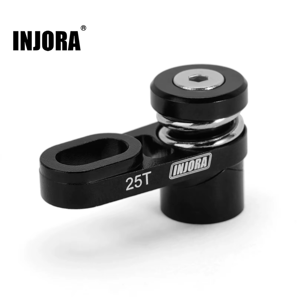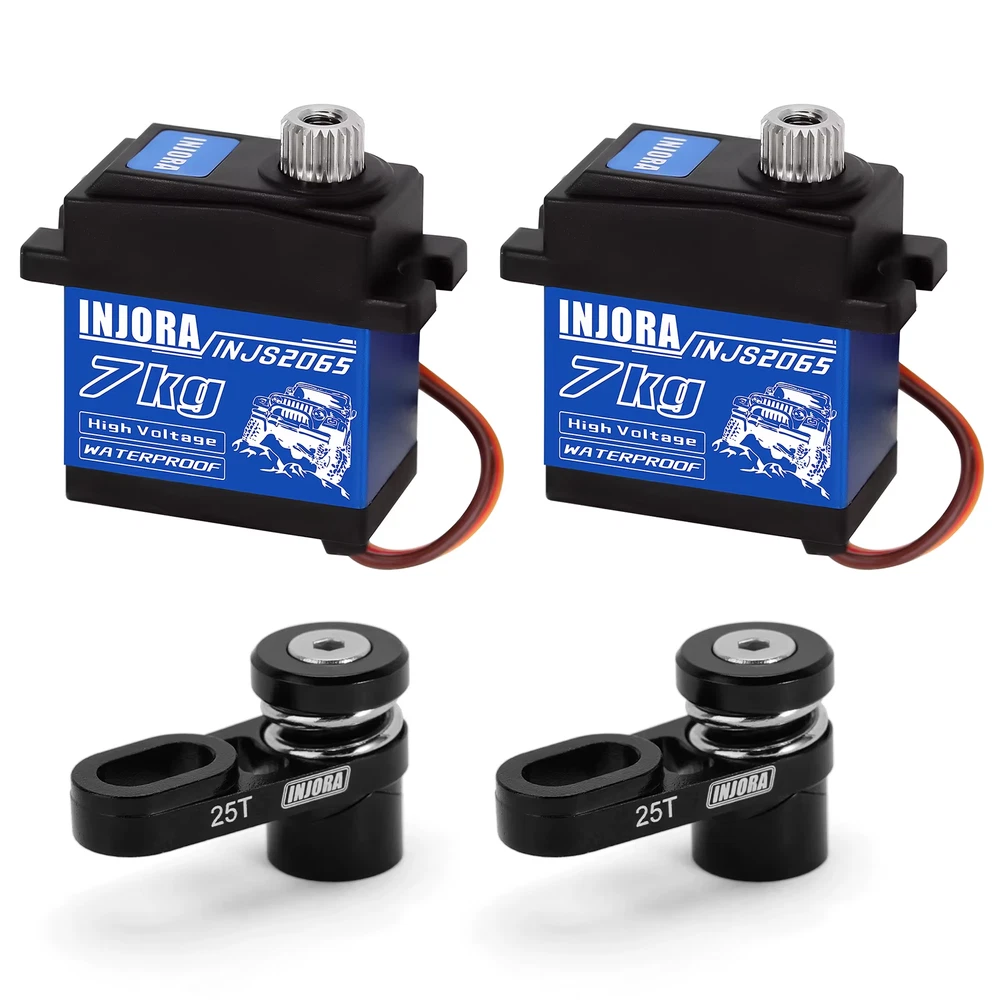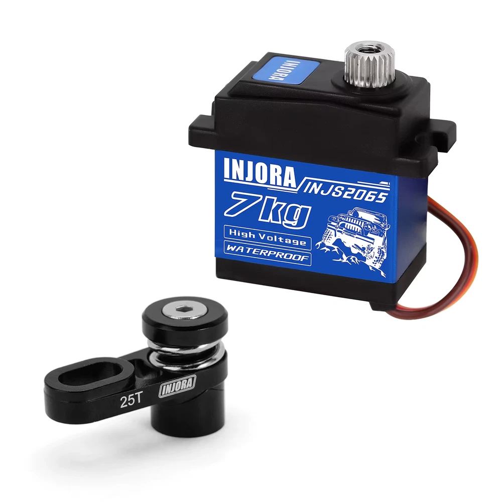 Features: CNC machined and black anodized High precision and fine workmanship Segmented spring structure design reduces the strain on the components and promotes longevity of servo Servo Arm Specifications: Material: Aluminum Color: Black Weight: 4g (0.14oz) Suit For: SCX10 PRO INJS2065 Servo Specifications: Dead band: 2μs Neutral Position: 1500μs/330hz Motor: Core Motor Remote Control Angle: 90-120°±2° 500-2500μs Angle: 180°±2° Voltage Range: 4.8V-8.4V Operating Speed(6.0V): 0.09''/60° Operating Speed(8.4V): 0.06''/60° Stall Torque(6.0V): 6.0 kg.cm/83.3oz.in Stall Torque(8.4V): 7.0 kg.cm/97.2oz.in Dimensions: 23*13*25.8mm Weight: 20g Connector Wire Length: JR 300 mm Bearing: 1BB Packing Weight: 28g Package size: 36X23X38mm