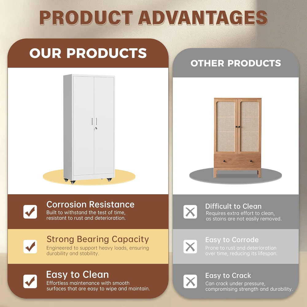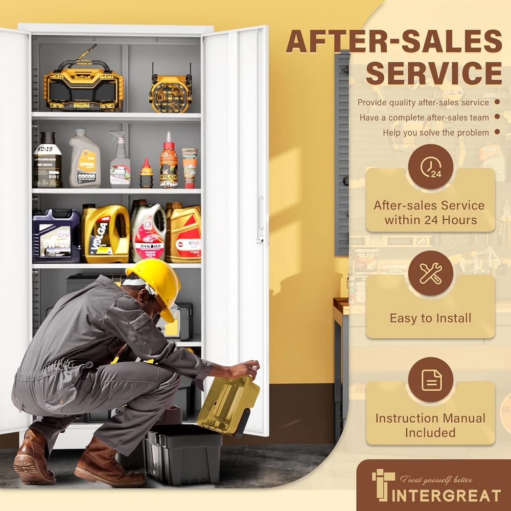 Store New Arrivals Add to Favorite View Feedback Contact INTERGREAT Metal Storage Cabinet with Wheels, 73" H Rolling Metal Cabinets with Doors and Shelves, White Steel Lockable Cabinet on Wheels for Garage Storage Description Number of Doors 2 Top Material Type Metal Room Type Garage Number of Compartments 5 Assembly Required Yes Brand INTERGREAT Material Metal Installation Type Freestanding Frame Material Metal Hardware Color White Finish Type Painted Manufacturer INTERGREAT Door Style out-ward, out-ward Assembly Instructions Description The metal cabinets come with easy assembly instructions to make installation a breeze. Is Customizable Yes Number of Shelves 9 Special Feature Wheeled Number of Levels 5 Mounting Type Floor Mount Color White Storage Options 5-tier, 4 adjustable shelves Base Type Legs Recommended Uses For Product Tools Product Dimensions 16"D x 32"W x 73"H Size RMC-73H Spacious & Adjustable 5-Tier Storage Cabinet:73" Tall Metal Storage Cabinet with 5 spacious tiers and 4 adjustable shelves, offering customizable garage & office storage.Storage cabinet with wheels perfect for organizing tools, supplies, and home essentials with 1,800+ cubic inches capacity (73"x32"x16"). Heavy-Duty 0.88mm Steel Construction:Built with ultra-durable 0.88mm steel, this lockable storage cabinet resists dents and corrosion. Ideal for garage, workshop, or office—supports heavy tools and equipment securely. Secure 3-Point Locking System & Smooth-Rolling Wheels: Rolling storage cabinet features a 3-point locking mechanism for added security and 4 smooth-gliding wheels for easy mobility, two of which can be secured. Multi-tool cart with wheels moves easily across the floor. Can also be removed for use if wheels are not required Multi-situation Application: From garage organization to office storage, this black storage cabinet with doors and shelves keeps things neat and tidy. Can be used as a tool chest, garage cabinet or home storage cabinet. Storage cabinet with doors and shelves can be used in garage,home and other environments Reliable INTERGREAT Custome Support: Provides 24/7 responsive service and satisfaction guarantee. The metal cabinets come with easy assembly instructions to make installation a breeze. Product description ABOUT US We offer the best prices around on high quality products. Our E-store includes media such as books, movies, music and games while offering electronics, toys, sporting apparel, clothing, tools, general home, garden items and more. SHIPPING We are always working hard to ensure your package arrives as soon as possible. Please understand that some factors like weather, high postal traffic, and the performance of shipping companies are outside of our control. For shipping outside of the continental USA, we only use eBay's Global Shipping Program.The item is shipped to KY and then sent to the rest of the world. International customers are responsible for all duties and taxes. Continue to check out in order to calculate costs for shipping the item to your country. Messages regarding eBay's Global Shipping Program MUST be directed at eBay EXCLUSIVELY. RETURNS We offer a 30-Day Return Policy on items which you are not completely satisfied with. You have the option for a full-refund or an exchange of the item. No returns are available on items shipped outside of the USA. PAYMENT We accept PayPal. CONTACT US This page content is yet to come Please ad us to your favorite seller and visit again later Thank You CUSTOMER SATISFACTION We try our very best to make sure every customer is completely satisfied. If there's a problem, message us! We're happy to help. WE ACCEPT Copyright © 2021 AutoDS. | All Rights Reserved
