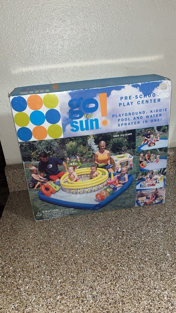 The INTEX Wet Set Pre-School Play Center Pool is a vintage inflatable pool from the year 2000, made of durable vinyl material. This round pool, measuring 72 inches in diameter, is perfect for preschool-aged children to enjoy splashing and playing in the water. With its new old stock (NOS) status, this play center offers a unique and nostalgic experience for kids to create lasting memories in the backyard.