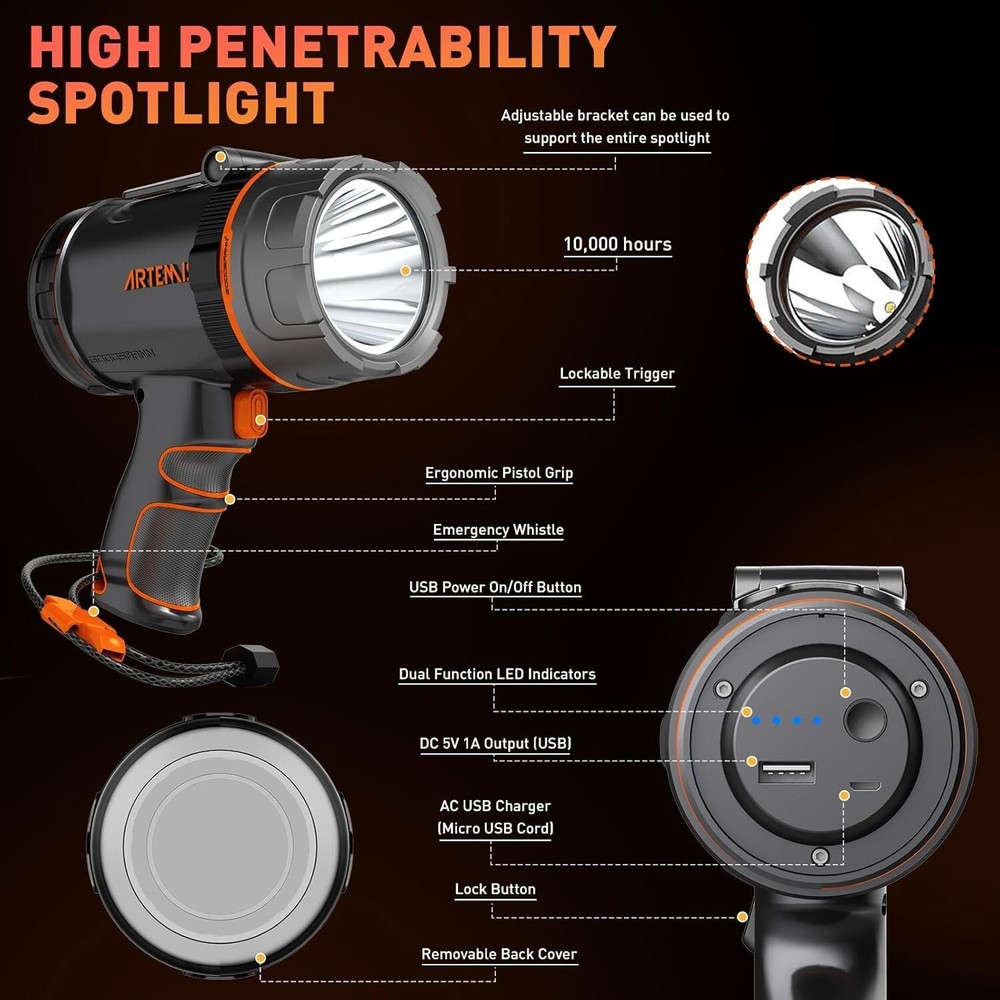 IP67 Waterproof 2000 Lumen LED Spotlight with Locking Trigger and USB Charging ‹ › ‹ › ‹ › ‹ › ‹ › ‹ › ‹ › ‹ › ‹ › ‹ › ‹ › IP67 Waterproof 2000 Lumen LED Spotlight Experience the brilliance of illumination with our state-of-the-art 2000 Lumen LED Spotlight. Crafted with precision and advanced LED technology, this spotlight is your perfect companion for all adventures and emergencies. Key Features: 2000 LUMENS BRIGHTNESS: Equipped with high-performance LED chips, this spotlight offers a stunning maximum output of 2000 lumens to light up your surroundings effectively. DYNAMIC LIGHTING MODES: Customize your lighting experience with three modes: High (2000 lumens), Medium (1000 lumens), and Low (600 lumens), adapting seamlessly to diverse environments. IP67 WATERPROOF: Built with robust IP67 technology, this spotlight is designed to withstand wet conditions, perfect for rainy days or humid environments. ON-OFF TRIGGER LOCK: Featuring a push-button locking mechanism to prevent accidental activation, ensuring safety during transportation. REVERSE CHARGE FUNCTIONALITY: Not only does it serve as a spotlight, but it also doubles as a power bank, allowing you to charge other devices via USB while on the go. EMERGENCY WHISTLE INCLUDED: Stay prepared in any situation with an emergency whistle attached to the grip; a small but essential tool for any outdoor enthusiast. Specifications: Projection Distance: Up to 460 yards Usage Times: 6-6.5 hours on high mode, 13 hours on medium mode, and 30 hours on low mode. Charging Time: 5-6 hours using the standard 100V-240V wall charger included. Why Choose Our 2000 Lumen Spotlight? Whether you are navigating through dark trails, need reliable lighting during emergencies, or simply exploring the great outdoors, our spotlight combines exceptional power with unparalleled durability. Its waterproof design ensures that you can always have reliable lighting no matter the weather, while the reverse charge feature makes it more versatile than ever. Don’t compromise on safety and performance—embrace the brilliance of our LED Spotlight today! Shipping Free & Fast Shipping - We offer free shipping to most of the USA with a normal delivery time of 3-7 days. However, due to the current situation, additional delivery time (up to 3 weeks) may be required for some items. Alternative Carriers - We may use alternative carriers (e.g. USPS, FedEx, UPS, etc.) to ensure your package arrives safely and on time. Due to the use of multiple carriers, we are unable to provide a tracking number automatically. Handling Time - Orders are processed and shipped within 1-2 business days of receiving cleared payment. Shipping Restrictions - Shipping to Alaska, Hawaii, Puerto Rico, Guam, and other US territories may incur shipping charges or delivery restrictions. Please contact us before ordering, or your order can be refunded/cancelled. State Restrictions - There may be restrictions based on your state of purchase. For example, certain items may not be shipped to California due to state regulations. Contact for Tracking Updates - If you require tracking updates or have any concerns about the delivery of your order, please feel free to contact us, and we will be happy to assist you. Return 30-Day Hassle-Free Returns - We want you to be completely satisfied with your purchase. If you are not, you can return the item within 30 days of receiving it for a full refund or exchange. Easy Return Process - To start a return, simply contact us and we will provide you with a prepaid return shipping label and detailed instructions. Restocking Fee - There are no restocking fees for returns. However, the buyer is responsible for return shipping costs if the return is not due to a seller's error. Refund Processing Time - Refunds will be processed within 5 business days of receiving the returned item in its original condition. Payment We accept all major credit cards, PayPal, and Apple Pay for your convenience. Your payment information is secure and encrypted to ensure a safe and seamless transaction. Please complete your payment within 3 days of purchase to avoid any delays in shipping. Feedback Your feedback is extremely important to us. We strive to provide the best products and customer service possible. If you are satisfied with your purchase, please take a moment to leave us a positive review. If you have any concerns or issues with your order, please contact us before leaving negative feedback. We are committed to resolving any problems and ensuring your satisfaction. Contact Us If you have any questions or concerns, please feel free to reach out to our customer support team. You can contact us through the eBay messaging system. We are available Monday to Friday, 9:00 am to 5:00 pm EST, and we will do our best to respond to your inquiry within 24 hours. Buy it now and enjoy a pleasant shopping experience! UPC: Not Set Voltage: 240 Item Height: Not Set Item Length: Not Set Item Weight: 1.08 pounds Item Width: Not Set Model: Not Set Lumens: 2000 Number of LEDs: LED Chips Unit Quantity: 1 Material: ABS,Aluminum,Rubber,TPR,PC Features: Batteries Included,Handheld,Rechargeable,Waterproof,Reverse Charge,Emergency Whistle Brand: Unbranded Type: Flashlight Lighting Technology: LED Power Source: USB Operating Range: 460 yards MPN: Not Set Battery Technology: Li-Ion Number of Batteries: 1 Color: Grey Country/Region of Manufacture: Not Set IP Rating: IP67 Operating Time: 5-10 Hours Number of Lights: 1-3 Unit Type: lb Personalize: Not Set