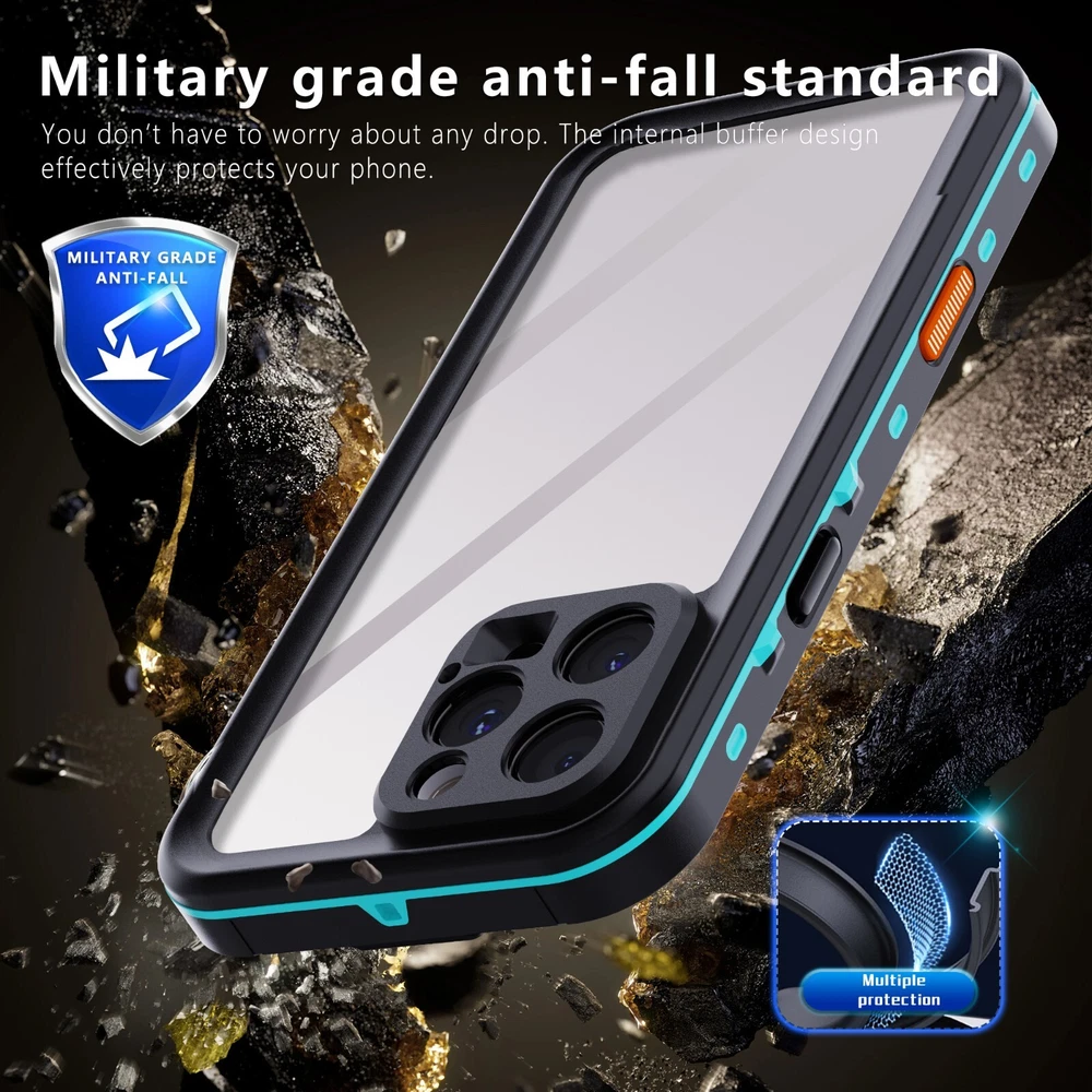 IP68 Underwater Full Body Waterproof Shockproof Case For iPhone 16 15 14 Pro Max + Note: The pictures shown are as samples, while the item delivered to you will be the same as your chosen model. If there are any problems when you receive the package, please contact us before leave any feedback.We will solve it for you patiently. Feature: 1-IP68 standard waterproof case, This waterproof case designed for underwater and tested to submersible to 10ft/3 meters and 6.6ft/2 meters deep for 30 minutes. shockproof/snowproof/dustproof. 2-Gives you enough confidence, protect your phone from shock and drop. Keep no screen protective film on your phone because the case comes with a screen protector. 3-Use the camera well and shoot beautiful photos and videos in high definition. 4-This waterproof case supports wireless charging, which ensures that your phone could charges quickly without removing your waterproof case. Easy to Install 1-Please remove the screen protector from the phone before installing this waterproof case, which will compromise the touch sensitivity and keep the case from being closed completely. 2-Please follow the instruction and install this case correctly. Make sure all the hole and thin seam-sealed tight. 3-Please do a water-test before installing the phone into this waterproof case. Ensuring that all the ports have been completely sealed. Package Included: 1 x Waterproof Case 1 x Cleaning Cloth 1 x Lanyard 1 x User Manual