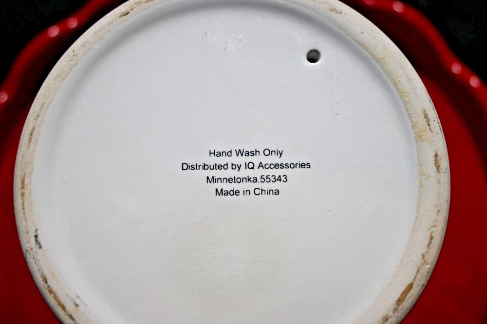 Shape: Round Type: Cake Stand Material: Ceramic Production Style: Art Pottery Color: Red Country/Region of Manufacture: China Time Period Manufactured: 1980-1989 Production Technique: Pottery Number of Items: 1 Vintage: Yes Seller Notes: “Good, no chips or cracks noted” Finish: Glossy Brand: IQ Accessories