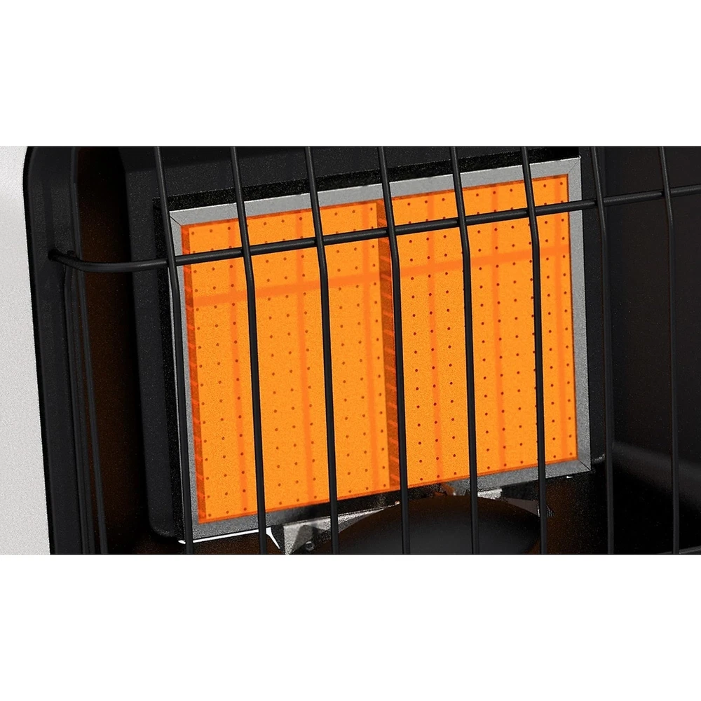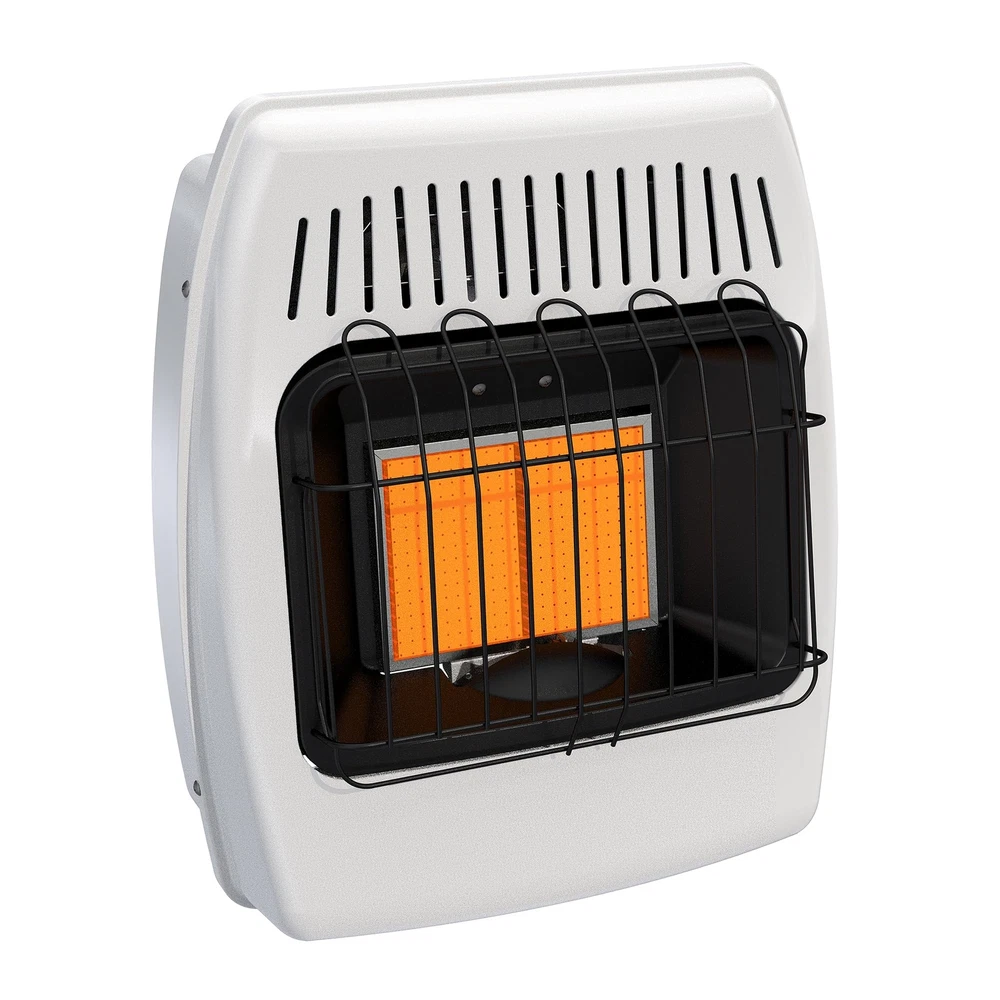 Dyna-Glo wall heaters are the ideal choice for safe, indoor supplemental heating.This state-of-the-art vent free technology does not require a flue or chimney. These heaters are great for use in your home, cabin, or garage. Since these heaters do not require electricity to operate, they make an excellent choice for everyday heating, and emergency situations when the power goes out. Using infrared heating technology, objects are warmed first similiar to how the sun heats & feels. This Infrared Wall Heaters burn with 99.9% efficiency, and operates on Natural Gas only. Not for sale in California or Canada. Check your local regulations on installation restrictions and requirements. DEPENDABLE Ideal for daily supplemental or emergency use, such as power outages ECONOMICAL Cut heating bills by warming only occupied areas COMFORT Manually adjust the heat setting to your desired temperature SAFE Built-in oxygen depletion sensor (ODS) immediately shuts down the heater if carbon monoxide or lack of oxygen is detected CONVENIENT One continuous press of the battery assisted igniter makes ignition quick & effortless VERSATILE Includes all necessary hardware & bracket for wall mounting UPGRADEABLE Separately sold optional base legs (WBL100) provide the alternative of floor mounting. Separately sold optional Wall Heater Fan (WHF100) distributes heat in a quiet, yet powerful way. Natural Gas Ready (Fuel conversion not permitted) Infrared Technology works by radiating heat to warm objects first - Similar to the sun,Up to 12,000 BTU's/hr heats up to 300 sq. ft. LOW-HI variable control knob offers the most customizable heat settings,No electricity required allows for reliable back-up heating incase of an emergency situation Separately sold optional fan (WHF100) improves the amount of square footage the heat reaches in a quiet, yet powerful way. Separately sold optional base legs (WBL100) allows for stable floor mounting 1 Year Warranty