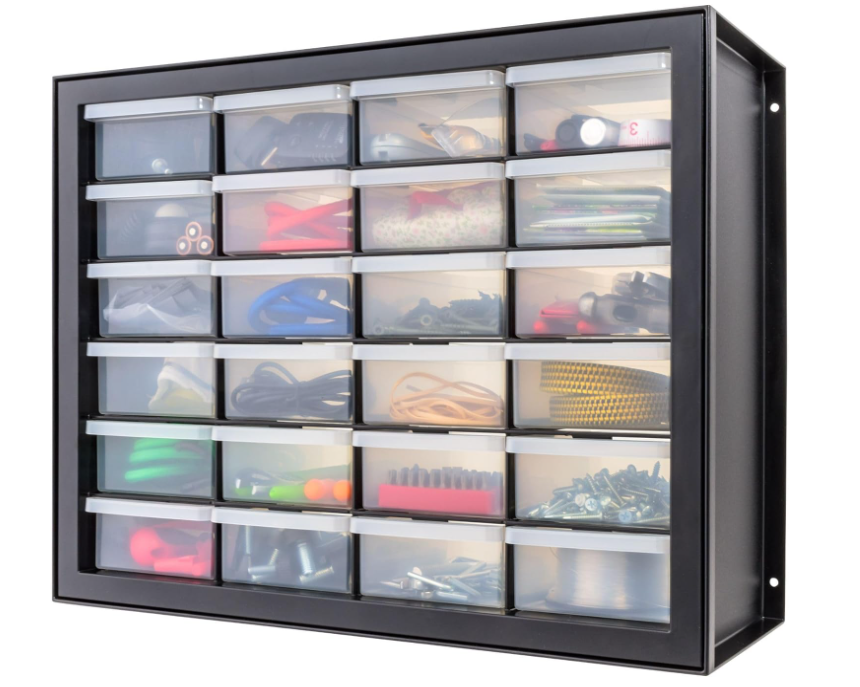 This IRIS organizer is a game-changer for keeping small parts tidy! The 24 drawers are sturdy and slide smoothly, making it easy to sort screws, bolts, craft supplies, or office essentials. The compact size fits neatly on a shelf or workbench, and the black plastic frame looks sleek while staying durable. Perfect for DIYers, crafters, or anyone who needs clutter-free storage—highly recommend!