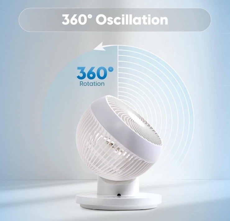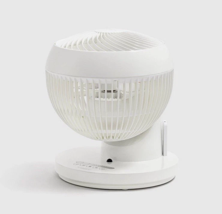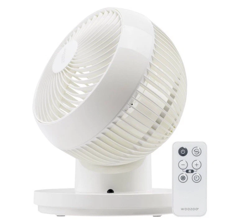 The IRIS WOOZOO 360° Oscillating Fan is a sleek and powerful portable fan that offers 3 speed settings and features a remote control for easy operation. With a modern white design and a timer function, this fan provides circulation in any room. The fan can be controlled remotely and can oscillate 360 degrees for customizable airflow. Constructed with durable materials like ABS and metal, this fan is perfect for maintaining indoor air quality and comfort in any space.