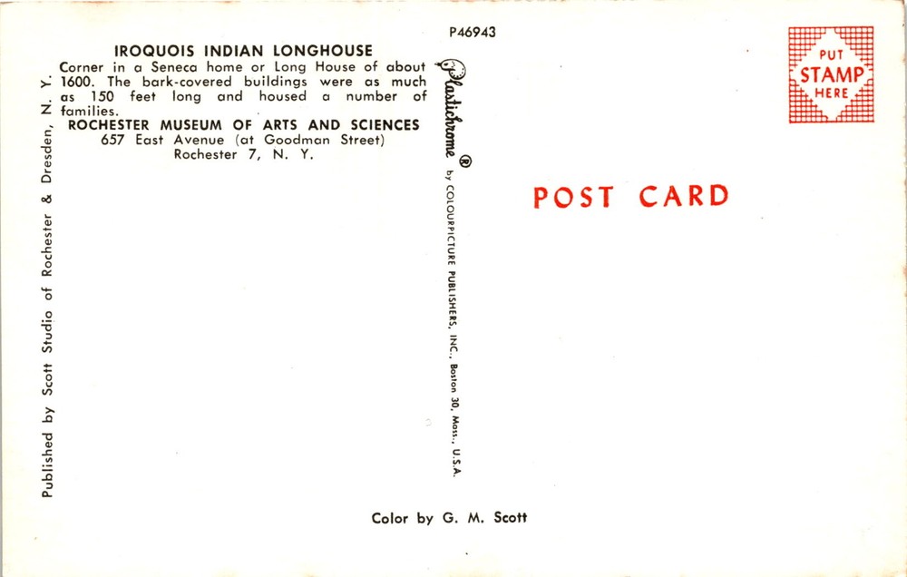 MAKE AN OFFER. THE MORE YOU BUY THE BETTER DEAL I WILL ACCEPT The front of the postcard features an image of an Iroquois Indian Longhouse, likely from around 1600. These traditional structures were made of bark and could be as long as 150 feet, accommodating multiple families within.