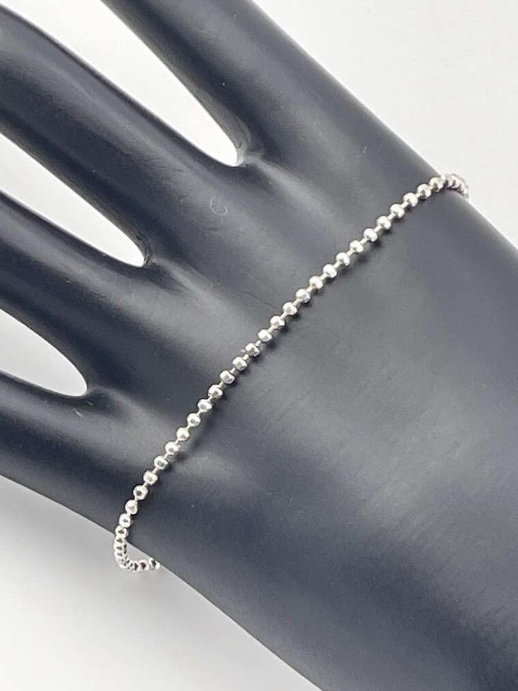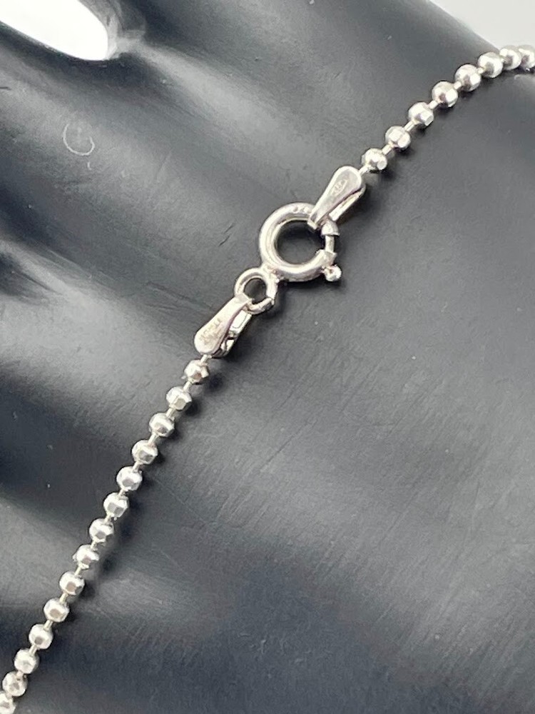 ITALY 925 STERLING SILVER 1.8MM DIAMOND CUT BALL BEAD CHAIN ANKLET 9.5" BOHO 980 SURFER ****************************** Thank you for your interest in our jewelry. We?d like to introduce ourselves. We are just a retired couple who love matching our customers with great jewelry. We?re not professional jewelers. To have the best shopping experience we like to recommend the following: Please measure your hand, wrist, finger or neck to ensure the best fit. We can use your measurements to help with sizing. Please ask all the questions you want. We know some stuff and, if we don?t, we?ll do the research. We like to learn too. More Stuff: If an item is described as ?gold over 925 sterling silver? this means it is gold vermeil. Vermeil is the process by which a layer of gold (usually 14k or 18k) is bonded to sterling silver. We only clean with gentle soap and warm water to avoid damage. The items we sell may be new or pre-owned and may have normal wear, slight damage, and/or tarnish. We make every effort to ensure the items we sell are as described. This includes testing to confirm metal purity if the item isn?t marked, and testing for gemstone identity. We try to put measurements in the jewelry description and include a photo of each piece with a U.S. quarter (25mm).