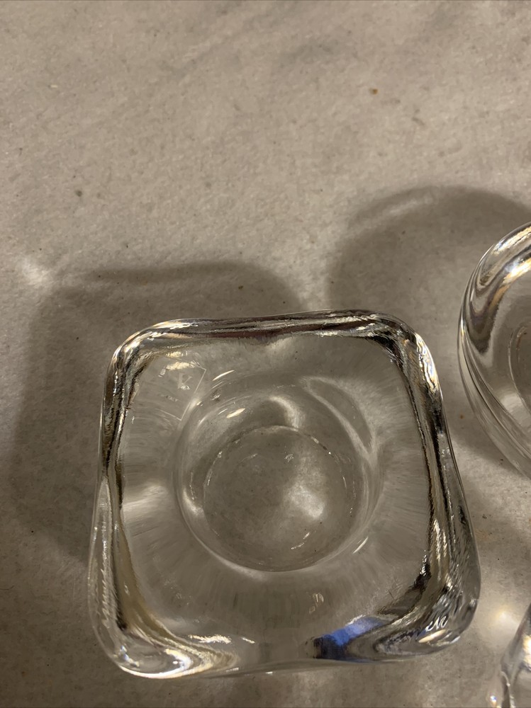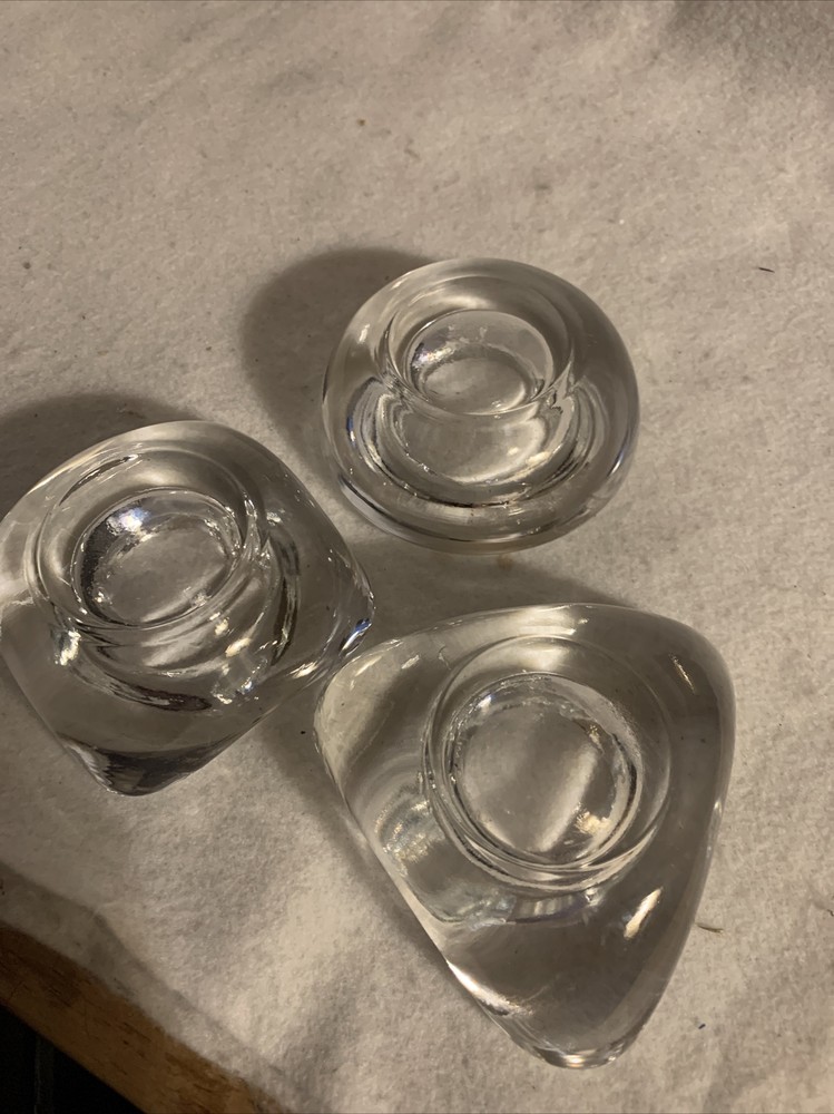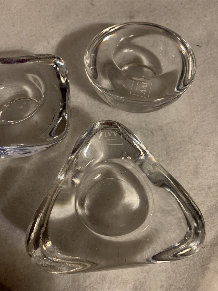 Set of 3 IVV Italy Heavy Geometric Shapes Glass Votive Tealight Candle Holders.