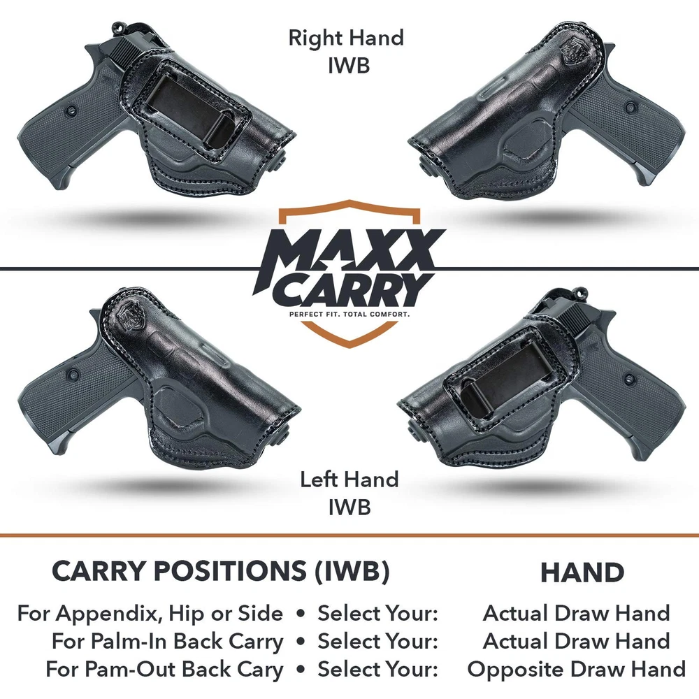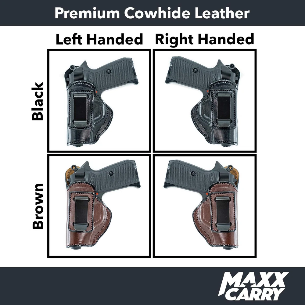 .380 PISTOL HOLSTER WITH PERFECTED FIT for Ruger LCP, LCP II .380 ACP | Colt Mustang | Diamondback DB380 | Kahr CW380, P380 | Keltec P32, P3AT | Kimber Micro 380, Solo | S&W Bodyguard 380 | Sig Sauer P238 | Walther PPK, PPK S and Others TOTAL COMFORT AND PROTECTION - Premium cowhide leather inside the waistband holster for comfortable wear with suede lined interior to protect your gun FULL LENGTH SWEAT GUARD - Leather gun holster features a high back that provides a shield between the body and the firearm EASY CLIP AND REMOVAL - Tempered steel spring clip provides easy removal of the holster and fits belt widths up to 1.75" (45 mm) EVERY DAY CONCEALED CARRY - no printing on your clothes. 100% satisfaction guarantee and limited lifetime warranty;