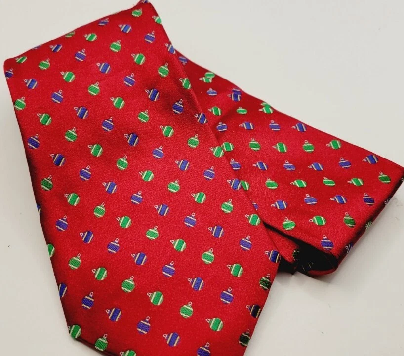 IZOD Men Silk Neck tie Red ornaments Christmas balls New 3.5" X 58"