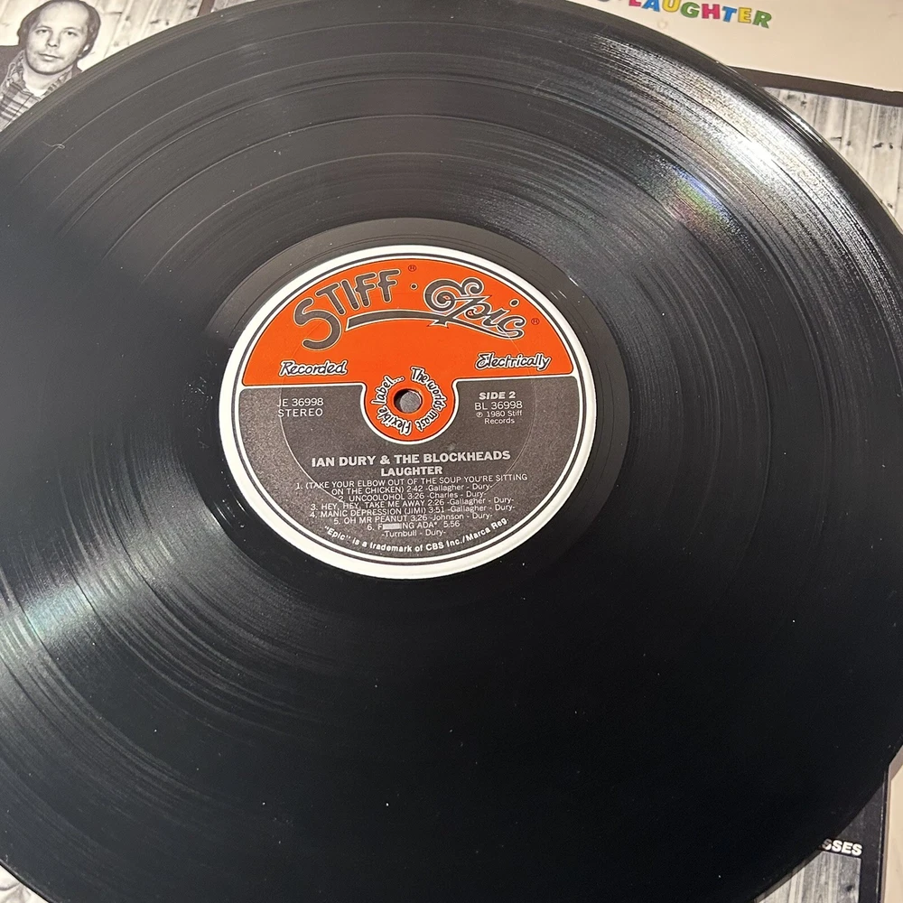 This is a must-have for any vinyl record collector! The 1980 LP release of "Laughter" by Ian Dury & The Blockheads is a classic punk/new wave/pop rock album that will transport you back to the 1980s. The record grading is very good plus (VG+) and the sleeve grading is excellent (EX), so you can expect high-quality sound and a well-preserved cover. The black vinyl material and 12" record size make this a perfect addition to any music lover's collection. The album features hits like "Sex and Violence" and "It's a Gas" and is a great representation of the band's unique style. Don't miss out on the opportunity to own a piece of music history!