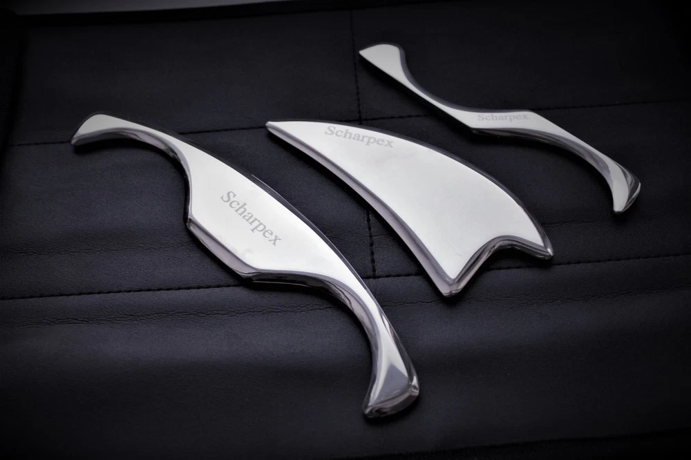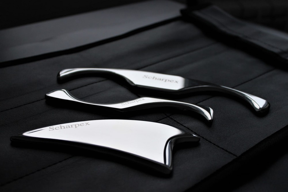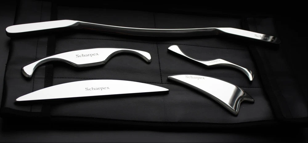 #1 The GM-3 tool has a size of 165 *105 mm, a weight of 403 grams and a steel thickness of 6 mm. Professional tool for IASTM therapy, Universal for working in sports massage, rehabilitation and body shaping. a tool for Anti-cellulite massage and IASTM therapy. (Instrumental soft tissue mobilization). A tool for body shaping, Anti-cellulite massage. #2 A set of 5 professional tools for IASTM therapy. The tools are made of steel. The Big Blade GM-1 has a length of 460 mm, a diameter of 10 mm and a weight of 550 grams. All instruments have a weight of 76 grams, 174 grams, 190 grams and 234 grams. It comes in a high-quality eco-leather case. Delivered via USPS First class within 2-6 days.