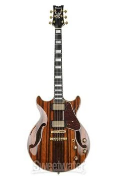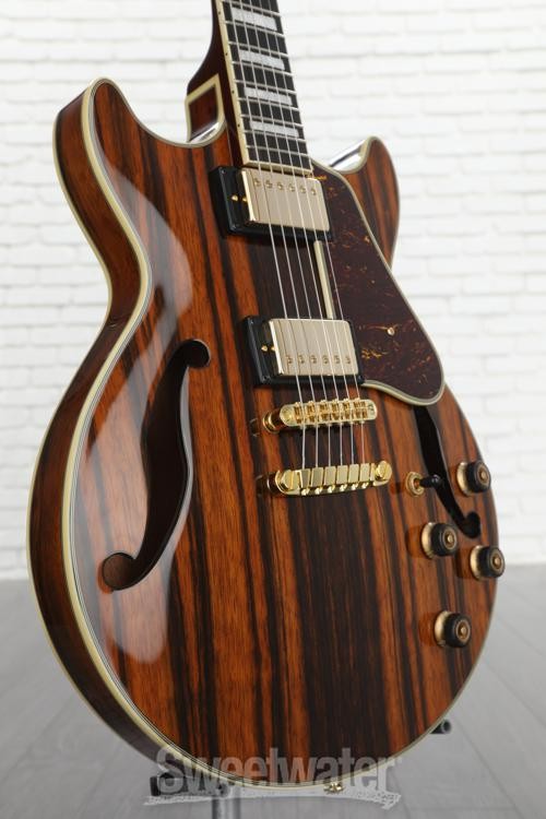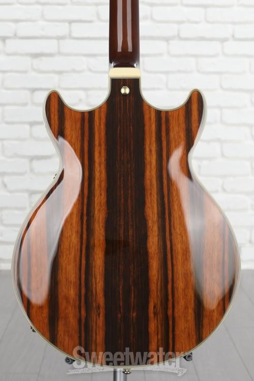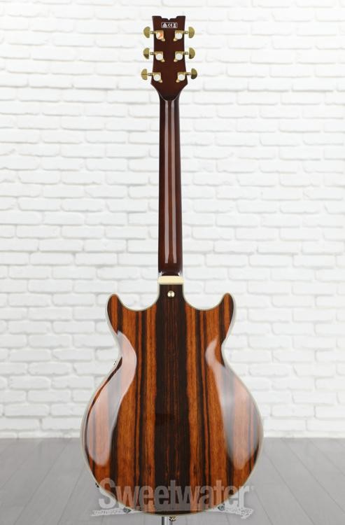 A Best-of-both-worlds Guitar The Ibanez Artcore Expressionist AM93ME electric guitar gives you the best of both worlds — the warmth and resonance of a semi-hollowbody and the compact handling ease of a solidbody. The AM93ME's distinctive double cutaway makes for easy access to the 22 frets meticulously set into this guitar's inviting bound ebony fingerboard, which is embellished with elegant pearl block inlays. Major eye candy for your fans, the AM93ME sports an eye-popping macassar ebony top, back, and sides and is dressed to impress in gold hardware. If you've been wanting a semi-hollowbody, check out the Ibanez Artcore Expressionist AM93ME.The perfect balance between solid and semi-hollow The Ibanez AM Series guitars walk the line between solid and semi-hollowbody. The AM93ME's comfortable, compact double-cut body features a solid center block that gives you the sustain typical of a solidbody, while the ebony archtop, back, and sides form an acoustic chamber Sweetwater is an Authorized Ibanez Dealer Genuine New Item Sweetwater's 2-year warranty and 55 point inspection Ibanez Artcore Expressionist AM93ME Semi-Hollow Electric Guitar - Natural Semi-hollowbody Electric Guitar with Macassar Ebony Body and Top, Nyatoh/Maple Neck, Ebony Fretboard, and 2 Humbucking Pickups - Natural A Best-of-both-worlds Guitar The Ibanez Artcore Expressionist AM93ME electric guitar gives you the best of both worlds — the warmth and resonance of a semi-hollowbody and the compact handling ease of a solidbody. The AM93ME's distinctive double cutaway makes for easy access to the 22 frets meticulously set into this guitar's inviting bound ebony fingerboard, which is embellished with elegant pearl block inlays. Major eye candy for your fans, the AM93ME sports an eye-popping macassar ebony top, back, and sides and is dressed to impress in gold hardware. If you've been wanting a semi-hollowbody, check out the Ibanez Artcore Expressionist AM93ME. The perfect balance between solid and semi-hollow The Ibanez AM Series guitars walk the line between solid and semi-hollowbody. The AM93ME's comfortable, compact double-cut body features a solid center block that gives you the sustain typical of a solidbody, while the ebony archtop, back, and sides form an acoustic chamber that vents through dual F-holes to give you the added warmth you expect from a classic semi-hollowbody guitar. The design is a delicate balance, and Ibanez nails it, giving you a guitar that combines the warmth of a semi-hollowbody with the compact dimensions of a solid. Super 58 pickups deliver amazing tonal versatility Ibanez fitted the AM93ME with two Super 58 humbucking pickups that serve up everything from creamy, nuanced jazz tones to a biting growl. Dime these pickups, though, through your overdriven tube amp or your favorite boost pedal (or both), and deploy a barrage of fat, snarling humbucker tone. Take it from guitarists at Sweetwater — these pickups are really versatile! AM Expressionist set neck for superb playing comfort The Ibanez AM93ME sports a super-comfortable AM Expressionist set neck capped with a 12"-radius bound ebony fingerboard fitted with 22 medium frets and embellished with elegant pearl block inlays. Not only does this setup look fabulous, but it feels fantastic in your fretting hand. Your fingers will fly on the Ibanez AM93. Ibanez AM93ME Semi-hollowbody Electric Guitar Features: Comfortable 3-piece nyatoh/maple AM Expressionist set neck Sensational-looking Macassar ebony top, back, and sides Easy-playing bound ebony fingerboard with pearl block inlays ART-1 adjustable fixed bridge and gold hardware A world of tones from dual Super 58 humbucking pickups Specification Detail Number of Strings 6 Left-/Right-handed Right-handed Body Type Semi-hollowbody Body Shape AM Artcore Expressionist Body Material Macassar Ebony Top Material Macassar Ebony Color Natural Body Finish Gloss Polyurethane Neck Material 3-piece Nyatoh/Maple Neck Shape AM Expressionist Neck Joint Set Neck Radius 12" Fingerboard Material Ebony Fingerboard Inlay Acrylic Blocks Number of Frets 22, Medium Scale Length 24.7" Nut Width 1.692" Nut Material Plastic Bridge/Tailpiece Gibraltar Performer Bridge Tuners Ibanez Die-cast Neck Pickup Super 58 Alnico Humbucker Bridge Pickup Super 58 Alnico Humbucker Controls 2 x volume, 2 x tone Switching 3-way toggle pickup switch Strings .010-.052 Case/Gig Bag Sold Separately RETURN INFORMATION We want you to be completely happy with your purchase from Sweetwater. If you are not satisfied with your product, you may return it for a refund of the purchase price within 30 days. If your purchase was eligible for Free Shipping, the shipping cost will be deducted from your credit or refund. Returns must be in the complete and original packaging with all accessories and complete documentation (Owner's Manual, warranty card, quick start guides, etc.), show no signs of wear or use, and include a Return Authorization number or be subject to a restocking fee.