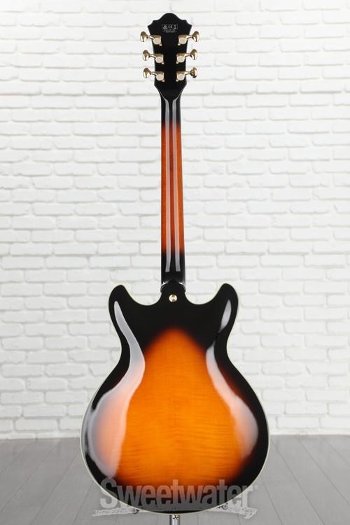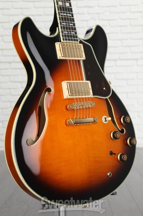 Vintage-Inspired Semi-hollowbody Electric Guitar The Artstar AS2000 combines the look and sound of a vintage semi-hollow with the modern feel that only Ibanez can achieve. The eye-popping figured anigre top, back, and sides provide a strong fundamental tone. There are plenty of tones to explore, thanks to Super 58 humbucking pickups and Tri-sound switching. The silky-smooth neck is made from mahogany with a stout piece of specially treated maple in the middle. You’ll appreciate the incredibly comfortable playing experience provided by the ebony fingerboard and Prestige fret end treatment. From its feel and tone to its features and aesthetics, the Ibanez Artstar AS2000 semi-hollowbody electric guitar is sure to impress in every way.Super 58 pickups lend a pure, vintage tone The Artstar AS2000 has a vintage voice, courtesy of the two Super 58 humbuckers. The Alnico III magnets and winding technique yield a vintage-style sound that sounds like the semi-hollows Sweetwater is an Authorized Ibanez Dealer Genuine New Item Sweetwater's 2-year warranty and 55 point inspection Ibanez Artstar AS2000 Semi-hollowbody Electric Guitar - Brown Sunburst Semi-hollowbody Electric Guitar with Figured Anigre Top, Back, and Sides, 3-pc Mahogany/Maple Neck, Ebony Fingerboard, and 2 Humbucking Pickups - Brown Sunburst Vintage-Inspired Semi-hollowbody Electric Guitar The Artstar AS2000 combines the look and sound of a vintage semi-hollow with the modern feel that only Ibanez can achieve. The eye-popping figured anigre top, back, and sides provide a strong fundamental tone. There are plenty of tones to explore, thanks to Super 58 humbucking pickups and Tri-sound switching. The silky-smooth neck is made from mahogany with a stout piece of specially treated maple in the middle. You’ll appreciate the incredibly comfortable playing experience provided by the ebony fingerboard and Prestige fret end treatment. From its feel and tone to its features and aesthetics, the Ibanez Artstar AS2000 semi-hollowbody electric guitar is sure to impress in every way. Super 58 pickups lend a pure, vintage tone The Artstar AS2000 has a vintage voice, courtesy of the two Super 58 humbuckers. The Alnico III magnets and winding technique yield a vintage-style sound that sounds like the semi-hollows of yore. And for an extra helping of sustain, the pickups are mounted directly in the center block. Your AS2000 is equipped with a Tri-sound switch to unlock three different pickup “voices.” The Super 58 humbuckers can be used in series, parallel, and single-coil operation, opening the door for you to explore an entire universe of sounds. Sounds great and fights feedback The figured anigre top, back, and sides of the AS2000 grab the eye instantly. But this guitar isn’t just a beauty. The semi-hollow body has a thick sound block that resists any tendency toward feedback. While most semi-hollows absolutely wail at higher volumes, it’s easy to keep the AS2000 smooth and velvety at high volumes. Plus, to provide the definition you need, Ibanez uses a bone nut. Combined with two Super 58 humbucking pickups, the AS2000 will dial in an expressive, rich tone. Silky-smooth playing experience When you take your AS2000 for your first test drive, you’ll be astonished by its neck. At Sweetwater, we commonly praise Ibanez for their incredibly comfortable and responsive neck designs, but this oil-finished 3-piece neck is in a league of its own. The AS Artstar neck carve leaves just enough wood between your fingers for an old-school feel with performance fit for a new-school axe. The neck doesn’t just feel like silk to play; it’s strong, too. The neck’s maple ply is treated with Ibanez’s S-Tech wood-roasting technique to relieve weight and increase stability in the same process. Take it from us: the Ibanez Artstar AS2000’s silky action and stability will impress you for years and years to come. Ibanez Artstar AS2000 Semi-hollowbody Electric Guitar Features: Figured anigre body exhibits a smooth response Super 58 humbucking pickups deliver classic tones Tri-sound switching unlocks extra tones 3-piece mahogany/maple neck adds extra stability Prestige fret edge treatment enhances playing feel and comfort Gotoh tuners and tailpiece promote tuning stability Specification Detail Number of Strings 6 Left-/Right-handed Right-handed Body Type Semi-hollowbody Body Shape Artstar AS Body Material Figured Anigre Top Material Figured Anigre Color Brown Sunburst Body Finish Gloss Polyester Neck Material 3-Piece African Mahogany/Roasted Maple Neck Shape AS Artstar Neck Joint Set Neck Radius 12" Fingerboard Material Ebony Fingerboard Inlay Acrylic/Abalone Blocks Number of Frets 22, Medium Scale Length 24.75" Nut Width 1.692" Nut Material Bone Bridge/Tailpiece Gotoh 510BN Bridge with Stopbar Tailpiece Tuners Gotoh Neck Pickup Super 58 Humbucker Bridge Pickup Super 58 Humbucker Controls 2 x volume, 2 x tone Switching Tri-sound switch, 3-way toggle pickup switch Strings .013-.052 Case/Gig Bag Hardshell Case RETURN INFORMATION We want you to be completely happy with your purchase from Sweetwater. If you are not satisfied with your product, you may return it for a refund of the purchase price within 30 days. If your purchase was eligible for Free Shipping, the shipping cost will be deducted from your credit or refund. Returns must be in the complete and original packaging with all accessories and complete documentation (Owner's Manual, warranty card, quick start guides, etc.), show no signs of wear or use, and include a Return Authorization number or be subject to a restocking fee.