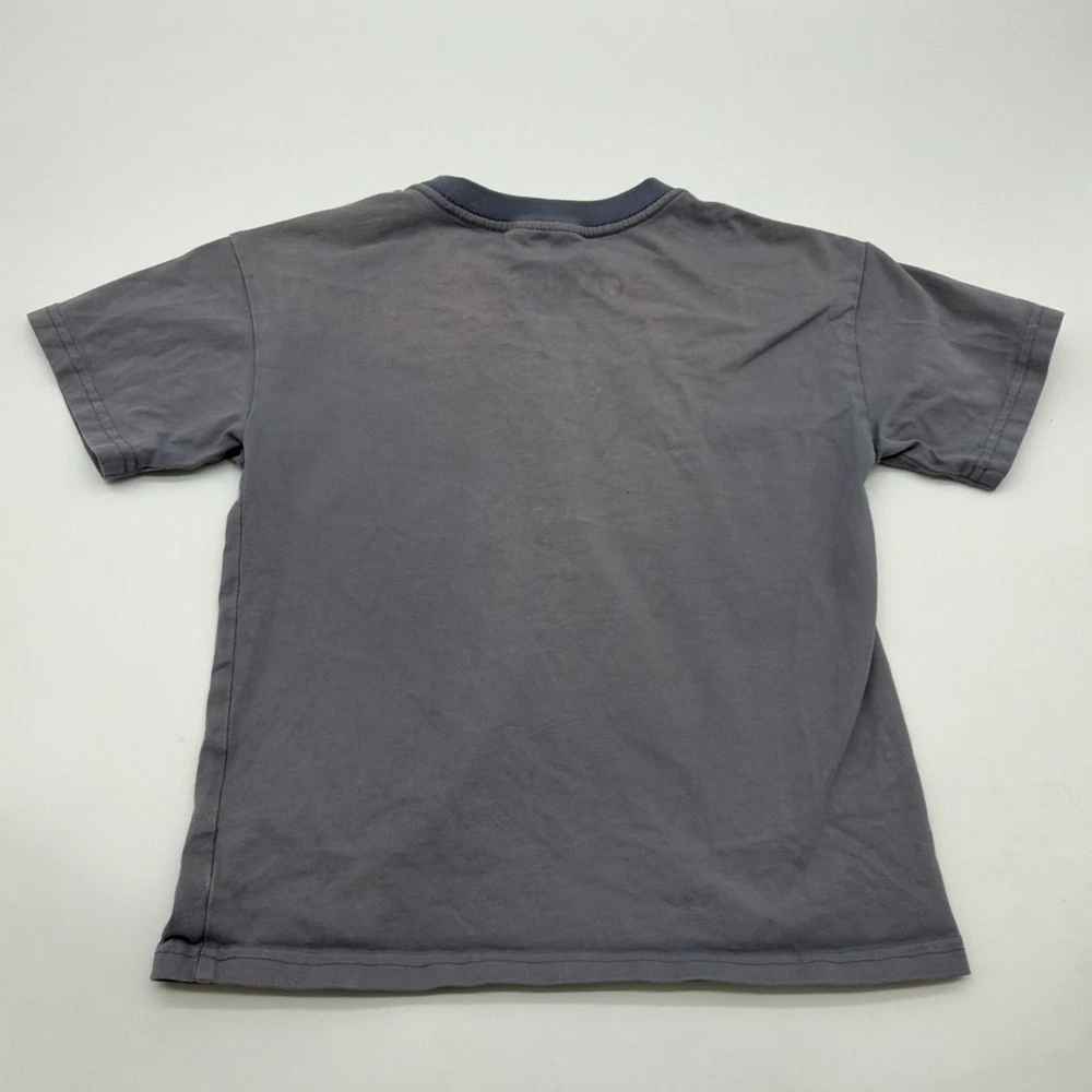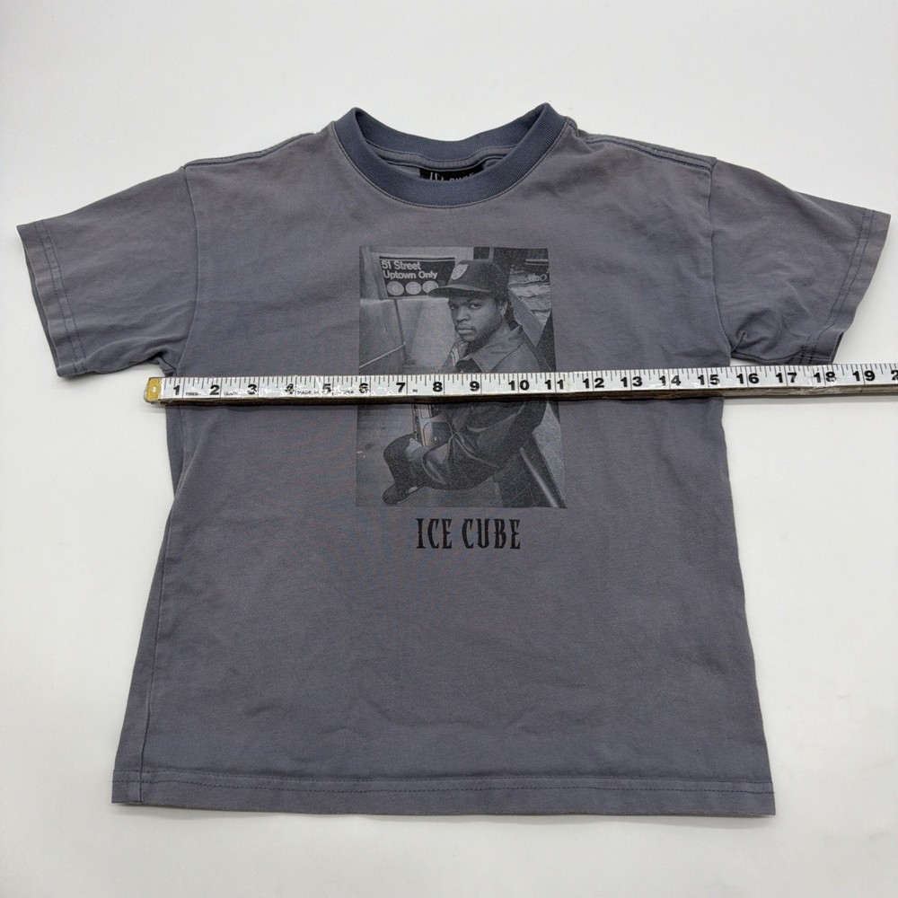 The Ice Cube Collection T-shirt for kids boys in size 7 is a stylish and comfortable addition to any young boy's wardrobe. Made from 100% cotton in a light fabric wash, this gray short-sleeve shirt features a graphic print of a boy character with a relaxed fit. Perfect for casual occasions, parties, or travel, this pullover shirt with a crew neck and logo accents is suitable for all seasons, including summer, fall, and spring. Ideal for activities like beach trips, dance, and basketball, this cartoon and hip hop themed t-shirt from the brand Icecube is sure to be a hit with any young trendsetter. Check pictures for flaws and measurements