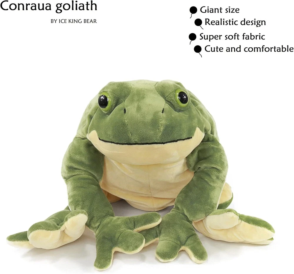 Ice King Bear Plush Giant Frog Stuffed Animal Soft Toy, 22 Inches Large, Green Product Details Product Dimensions: 21 x 13 x 7.5 inches Item Weight: 15.8 ounces Manufacturer recommended age: 12 months and up Department: unisex-child Manufacturer: ICE KING BEAR Ultra supple shortplush Imported Scientific name of this frog is Conraua goliath (The largest frog in the world). Product size is 22 inches length from head to soles of the feet, big size. Soft, huggable material built to high-quality standards and hand wash best. Suit for kids toy, funny party props, early education animals, cute decorations in house. Children will like this big and realistic frog stuffed toy, perfect gift for birthday and holiday. In the past decade, ICE KING BEAR are dedicated to creat high-guality soft toy for babies and kids.Every single product and each component abided “accompany your children grow, improve its intellectual development,safe environmental protection” the toy design process,we start from the children’s ideas,give full play to their creativity and innovative.Therefore we will update 35% of the product every year. The exquisite design, the quality of the work on the toys, long-term operational integrity and good service well receive by the broad masses of the trust. Because our mission is pay attention to every detail and want to supply the best toy to you. Our Giant Frog Stuffed Animal Toy is big and realistic frog is a great plush toy and also makes a neat unique gift for babies and kids on birthday or holiday like Christmas.Children will like this green frog stuffed toy.
