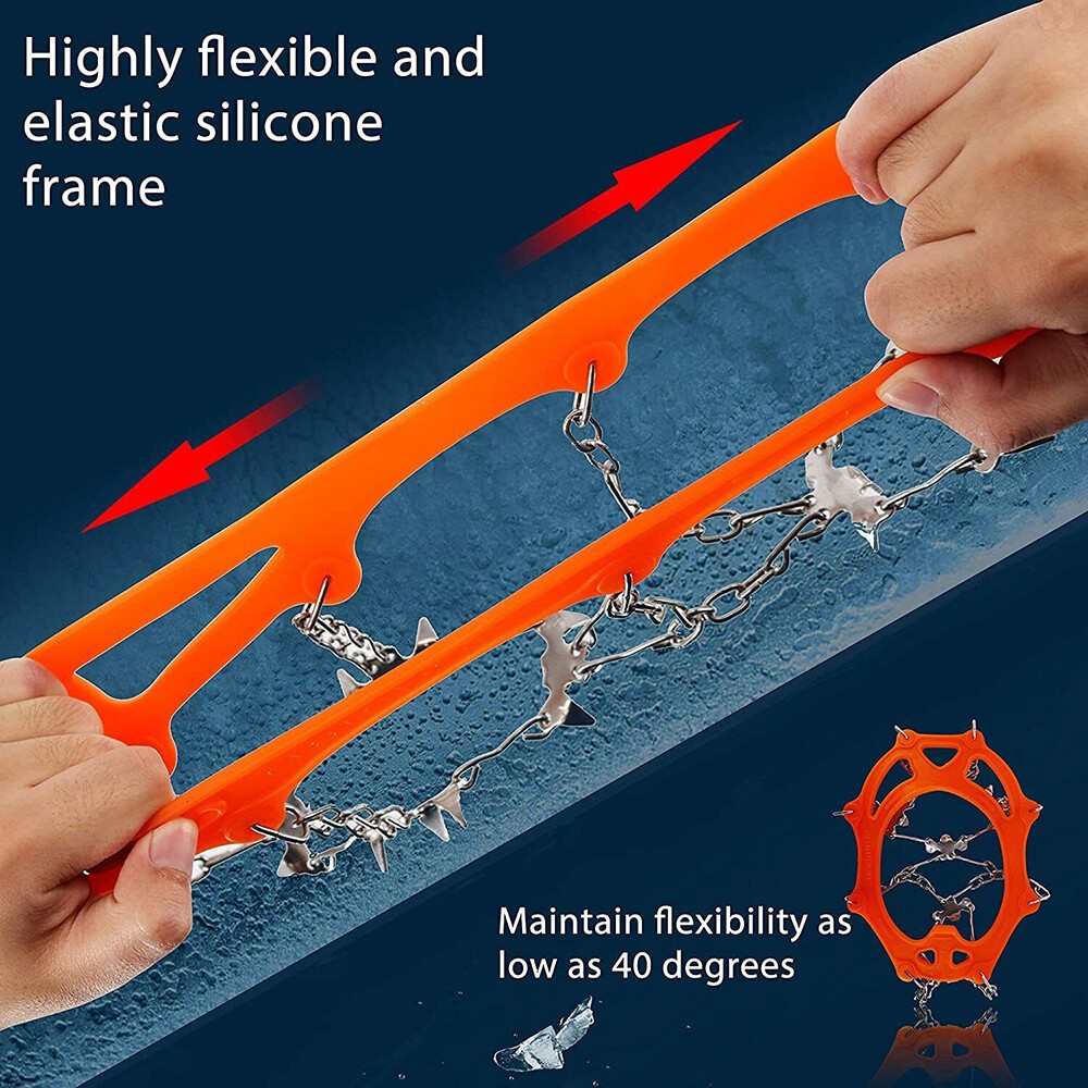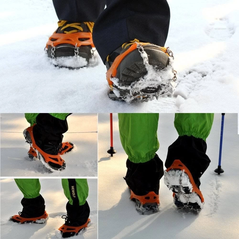 Features 1.The multi-directional ice cleats allow you to stride easily on ice, snow-covered pavement and gravel 2.The ice cleats are made of thermoplastic elastomer material and steel studs, easy wear and lightweight, all-day traction solution 3.Full cover on heel and forefoot, reduce injury, The ice snow traction cleats prevent slips and falls on ice, snow, and wet pavement 4.The ice cleats are designed to stretch considerably to fit appropriately over your shoes or boots 5.Great for ice fishing, hunting, walking, jogging, hiking, running, snow shoveling, etc. Description Strong Grip: rugged steel studs on fore and heel of foot to reduce the risk of falls and increase stability & safety while walking on snow and ice. High Quality Material: Our shoe covers are made of high quality TPE rubber, super elasticity, high toughness, non-tear and non-snap. Snug fit with your footwear and easily slip on/off. Tolerant to -45℃. No-slip Raised Design: Each side of our ice cleats designs with no-slip raised, which can great increase the friction bewteen ground&ice cleats, shoes&ice cleats, offer excellent traction. Size:L Package: 1Pair Ice Snow Anti Slip Spikes Grips Grippers Crampons( Not included shoes!!! )