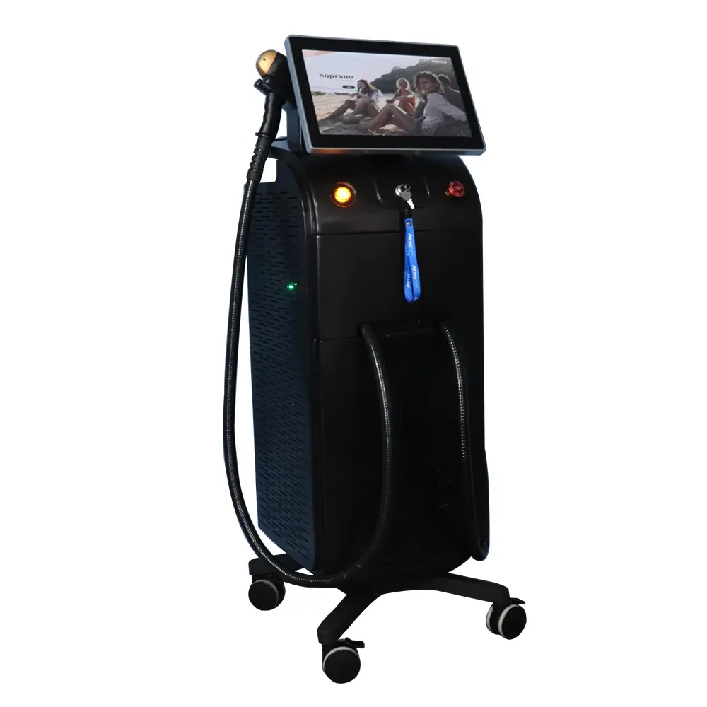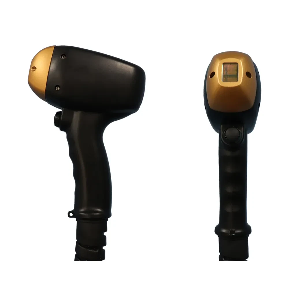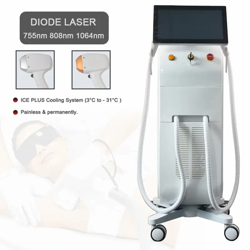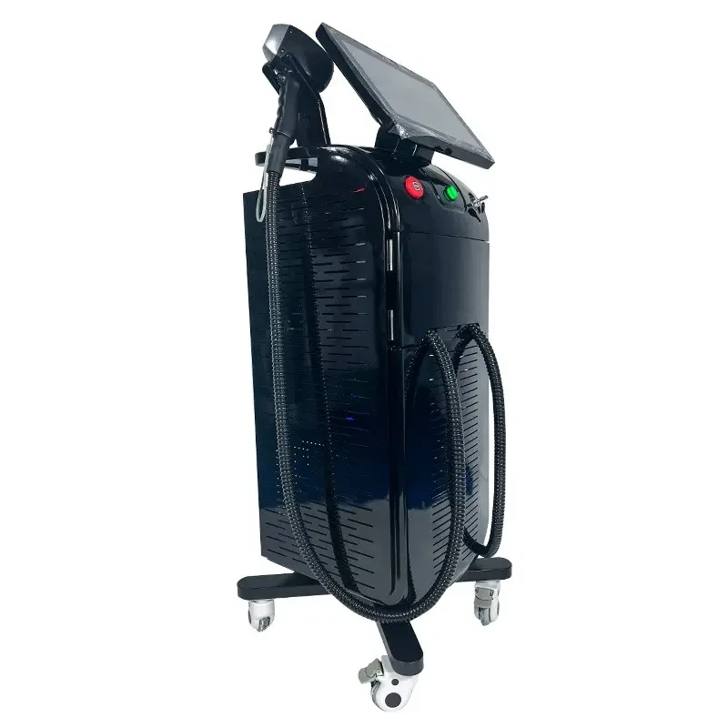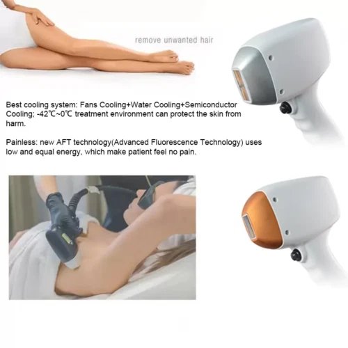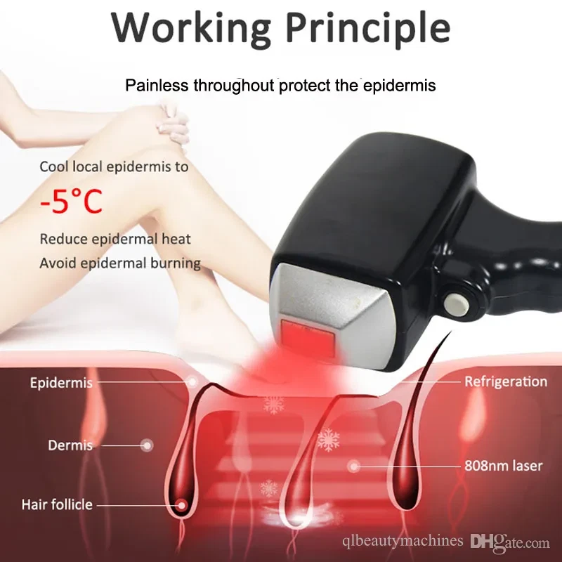 PRINCIPLE Diode laser hair removal technology is based on the selective dynamics of light and heat. The laser goes through the skin surface to reach the root of hair follicles; light can be absorbed and converted into heat damaged hair follicle tissue, so that hair loss regeneration without injury surrounding tissue. Slight pain, easy operation, the most safe, technology for permanent hair removal now. Dual Control Handle -755nm/808nm/1064nm 3 in 1 advantage -Combined 808nm for All Skin Type, All Hair Colors Diode Laser 808nm With Gemany Imported Diode Laser;Half Treatment Time Perform more treatment sessions in less time, allowing you to quickly treat larger areas,while offering your patients the fastest and more effective hair removal feelings. Diode Laser 1064nm New experience for specialized darker skin hair removal 1064nm laser, 1064nm wavelength hair removal treatment will be safer especially for dark skin, skin rejuvenation. performance well, and strong power cooling function, treatment comfortable and safe. Diode Laser 755nm The most popular 755nm diode laser which replace the solid state alexandrite diode laser and have a more comfortable treatment. It is effective for melanin to absorb 755nm diode laser. This characteristic is good for villi hair removal when people use 755nm diode laser treatment handle. And the treatment time is getting shorter. Specification Laser Type:808nm Diode laser Display:10.4 inch color touch LCD Screen Handles: 600W+800W Spot Size:12*20 mm2 / 12*35 mm2 Pulse width:10-400ms adjustable Energy:10-120J /cm2 Crystal temperature:-20~5°C Frenquency:1*20hz (Continuous mode) Cooling:water+air+semiconductor Temperature of Probe:0~4°C Peak Power:2000W Shots Time:20 million shots Voltage:AC220V+22V,50/60Hz,10A Diode laser equipment adopts 808 nm, particularly effective to hair follicle melanocytes without injury surrounding tissue. The laser light can be absorbed by hair shaft and hair follicles in the melanin, and converted into heat, thus increasing the hair follicle temperature. When the temperature raises high enough to irreversibly damage the hair follicle structure, which disappear after a period of natural physiological processes of hair follicles and thus achieve the purpose of permanent hair removal. Package include : 1 * Main Machine +Accessories