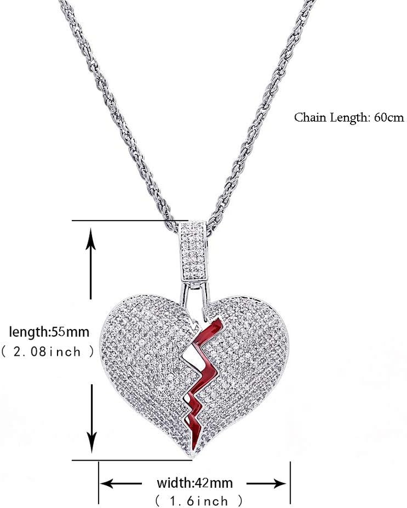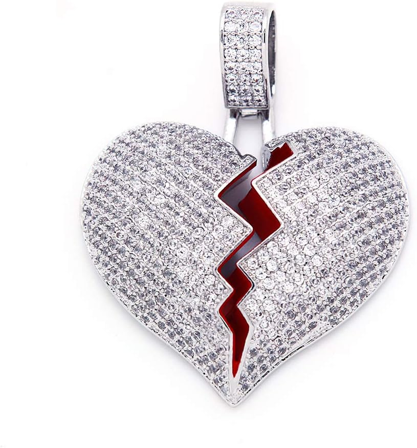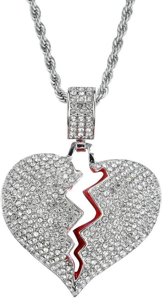 Iced Out Men's Diamond Broken Heart Pendant Hip Hop Chain Necklace