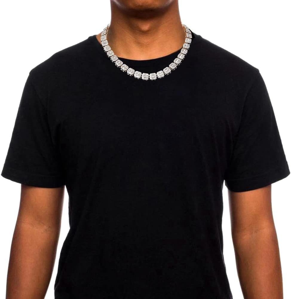 Iced Out Chains for Men Silver and Gold Diamond Tennis Necklaces-Mens Hip Hop Baguette Tennis Chains 16-30 Inches Mens Hip Hop Iced Out Silver and Gold Plated Bling Baguette Diamond Tennis Chain Necklaces Costume Rapper Jewelry and Accessories This bling baguette designed square cz tennis chain is paved with hundreds brilliant artificial diamonds and plated in shiny 14k real gold,which gave it the most bling bling and iced out look and feel. This chain is the most popoular men necklace style which could perfectly meet most of your clothings in all-purpose. warm tips: to protect it been tarnished, pls keep it away from any kind of liquids like water,perfume,shower,swimming,rain etc. When took off, pls wipe it by soft cloth or brush and put it into jewelry box. by the way, keep it away from any sharps! About HH Bling Empire: HH Bling Empire is a jewelry brand which specialized in making and selling fashion and high quality hip hop jewelry and accessories for men and women, including many classic and fashionable collections like: Tennis and cuban chains, ankh & crosses, initial letters, Lab ruby & Gems, king crowns, diamond chains and bracelets, teeth grills, pendants and rings etc. We have our own factory with a strong group including design,development,production and QC team. Based on this,we are able to provide you the superior quality and best customer services. By the way, we also available to provide you special customized service! Metal stamp 14k Chain Tennis Gem Type lab diamond Color Cluster-Silver Material Zinc Metal Zinc Setting Pave Department unisex-adult Number of stones 100 Size 18" (n/a) Shipping from the USA All of our products are shipped from the USA, ensuring quick delivery to your destination. Payment We offer the following payment methods: PayPal, credit card, bank transfer, and eBay's secure payment system. Free Shipping & Free Returns Shipping within the USA is FREE. Additionally, any return is absolutely free for you. Risk-Free Purchase You have the option to return an item within 30 days without any justification. We cover the return shipping costs! Fast Shipping We ship immediately upon receipt of payment. Generally, the package is delivered within 2-3 days in the USA. If it takes longer, we will contact you. Quality and Costs Made in Europe, USA, China No customs fees or additional charges Total satisfaction guarantee Invoice with declared VAT available upon request in .pdf format Feedback Your feedback is very important to us. After you pay for your purchase, you will automatically receive positive feedback from us.