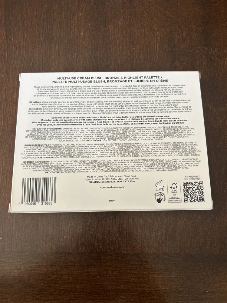 Iconic London Multi-Use Cream Blush, Bronze & Highlight Palette New In Box.