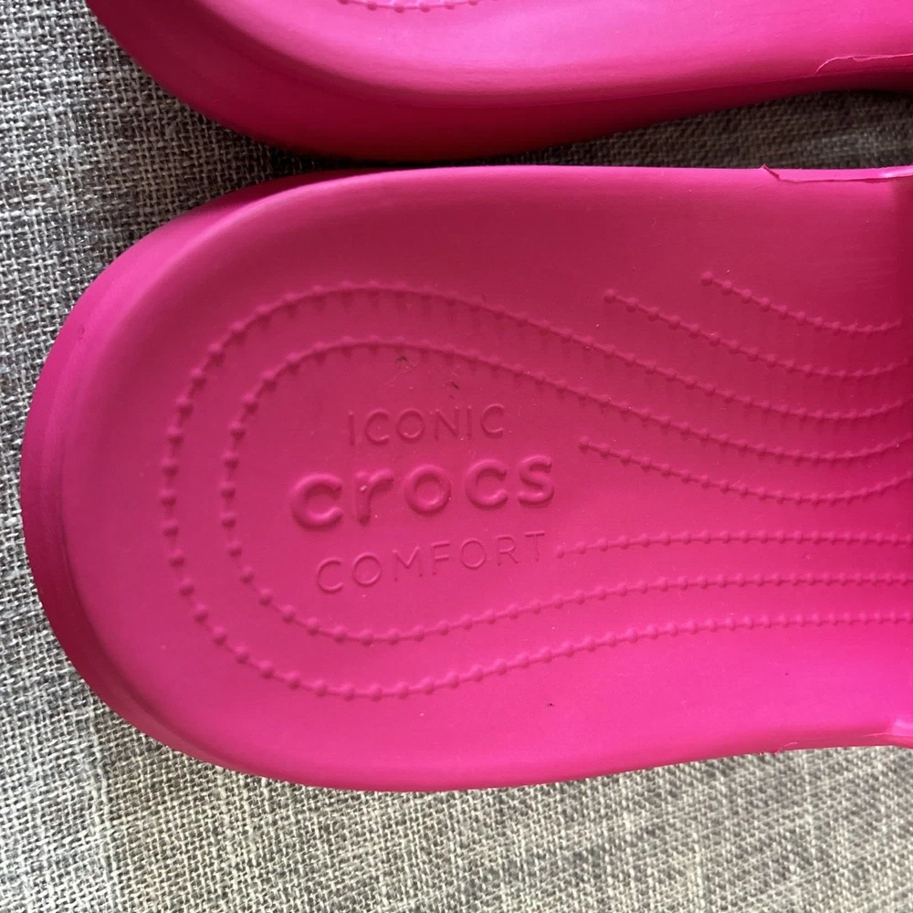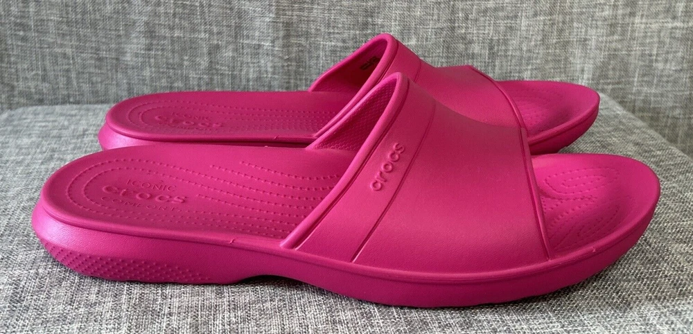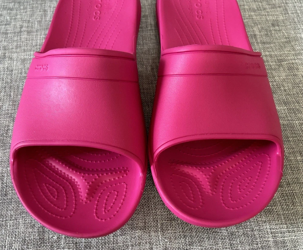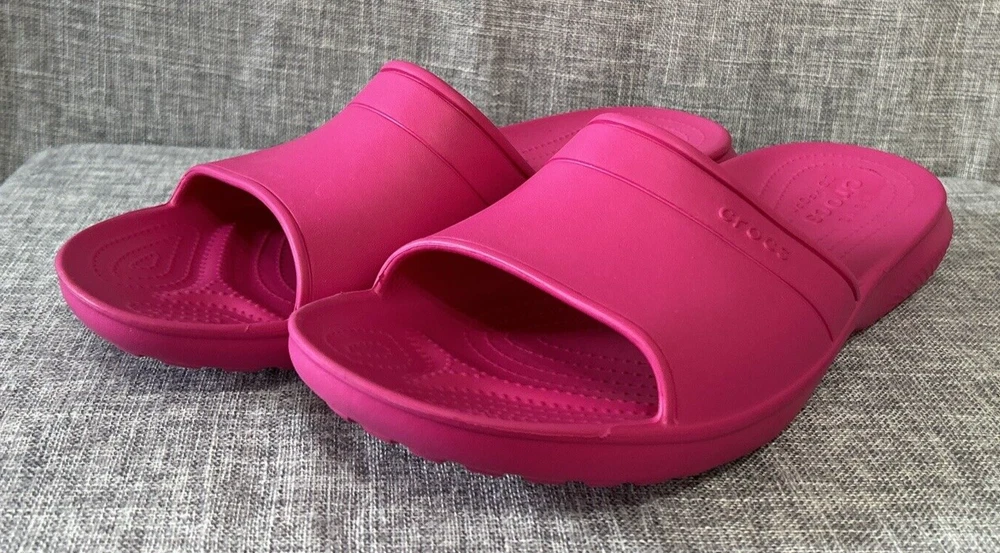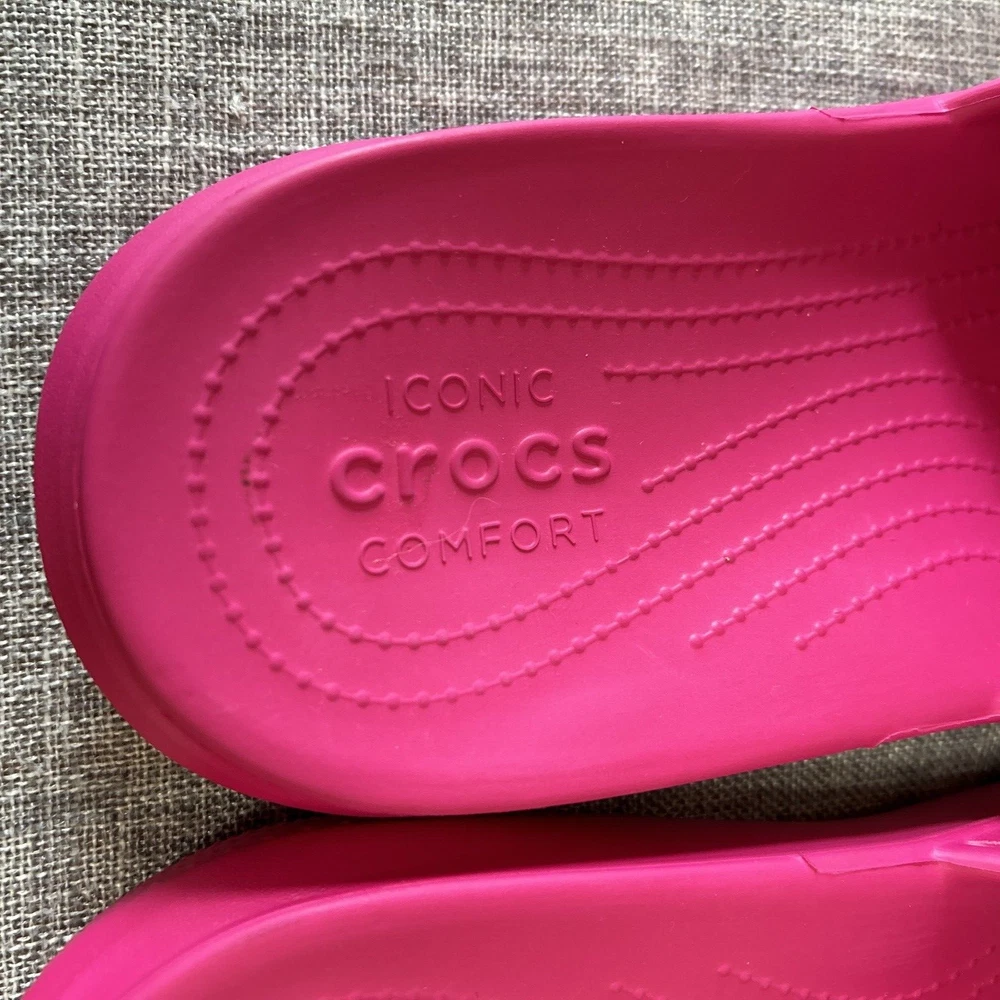Iconic Crocs Comfort Slides, Fuchsia Hot Pink, No Holes Crocband, Men's Size 13 **Color is the Fuschia/Hot Pink Color as seen in the first 12 Pictures** Pre-Owned - Please see Pictures for Details