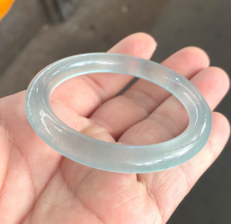 $ 15.8355-64mm Natural Grade A Icy Blue Jadeite Bangle Bracelet