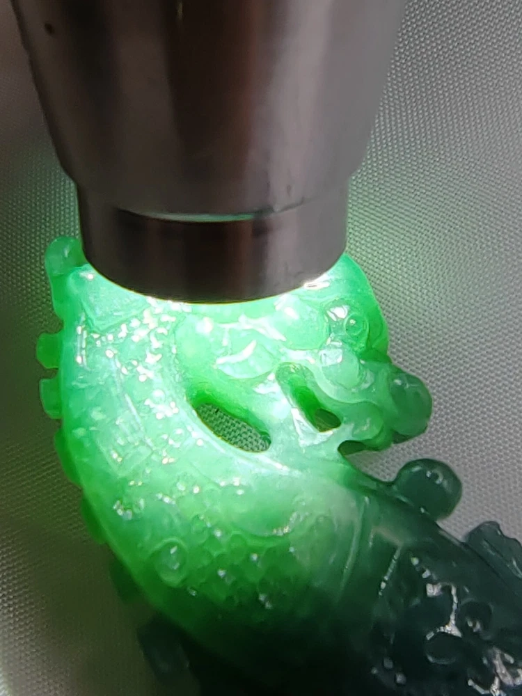 Natural Ice Bluish Green Jadeite Jade Dragon Pendant Fine Hollow Hand Carving Icy Ice Bluish Green Natural Jadeite Jade Dragon Pendant for Prosperity and Longevity With certificate (Authentic Type A Jadeite) 天然翡翠 - 镂空精雕活环冰种蓝水天然翡翠吉瑞祥龙牌子 / エメラルドドラゴンペンダント 备证书 (A货天然翡翠) *Certificate No - GFR00200714381 *Materials - 100% Natural Jadeite Jade *Refractive Index - 1.66 ( spot measurement ) *Jadeite Size - appr ox - 79.70mm/22.20mm/11.60mm *Weight - 36.97 grams *Carat - 184.85 carats *Original - Guatemala / Carved and Refine in China *Package - 1 X Pendant with String / 1 X Gift Box / 1 X Certificate *Delivery - Worldwide Free Shipping Video Display Link :- https://youtu.be/VfGPDp4u5_4 Only One Unit Available ************************************************************************ This jadeite pendant is an exceptionally rare and finely handcrafted treasure, belonging to the icy bluish green variety of jadeite. Crafted with meticulous skill, it features delicate hollowing and intricate carving, forming the image of an auspicious dragon. This exquisite piece comes with a certificate, verifying its status as Grade A natural jadeite. Its dimensions are approximately 79.70mm/22.20mm/11.60mm, with a weight of 36.97 grams, equivalent to 184.85 carats. Jadeite, as a precious gemstone, is highly sought after for its rarity. This pendant not only holds significant collectible value but also represents a fusion of carving art and jewelry craftsmanship. The auspicious dragon symbolizes authority and good fortune, making this pendant not only an artistic masterpiece but also a symbol of luck and blessings. Its presence not only provides visual enjoyment but also embodies people's aspirations for beauty and happiness. This exquisite piece can truly be described as a crystallization of carving art and jewelry. A slight difference in color compositions as shown in the photos may occur as with all colored gemstones. Color changes under different lighting conditions, for example indoors or outdoors, and even the time of day can make the stone's color look slightly different. We do our best to display the colors as we perceive them. Color perception is highly personal, some people perceive more colors than others, and colors may appear differently on different screens and devices due to differences in screen hardware and device display settings. Kindly take this into consideration before purchasing. The Rarity and Collectible Value of Natural Jadeite Jadeite, often referred to as "imperial jade" due to its historical association with royalty, is a gemstone of unparalleled rarity and enduring collectible value. Its captivating allure lies not only in its exquisite beauty but also in its remarkable geological formation, making it a treasure sought by collectors and connoisseurs worldwide. 1. Geological Rarity : Natural jadeite is exceptionally rare, originating from remote deposits in Myanmar (Burma), where geological conditions of high pressure and low temperature over millions of years have given birth to this magnificent gemstone. It is estimated that less than 1% of jadeite mined globally meets the stringent quality standards for fine jewelry and investment-grade pieces. 2. Vivid Color Palette : Jadeite is celebrated for its diverse and vibrant range of colors, from the iconic imperial green to mesmerizing lavender, radiant white, and fiery reds. The vividness of these hues is unparalleled, and collectors are often drawn to the challenge of acquiring specific colors and shades. 3. Transparency and Texture : The transparency and texture of jadeite are equally important factors contributing to its desirability. Fine jadeite possesses a crystalline clarity that allows light to penetrate and illuminate the gem from within, creating a luminous, almost ethereal quality. 4. Cultural Significance : Throughout history, jadeite has held immense cultural significance in various civilizations, including China, where it symbolizes virtue, integrity, and longevity. This cultural reverence adds an additional layer of allure to jadeite, making it a cherished symbol of heritage and tradition. 5. Investment Potential : Beyond its intrinsic beauty, jadeite is increasingly recognized as a solid investment option. Its scarcity, combined with growing global demand, has resulted in significant appreciation in value over the years. Savvy collectors and investors view jadeite as a tangible asset with the potential for long-term capital appreciation. 6. Expertise and Certification : Due to the nuanced nature of jadeite, it is essential to rely on reputable gemological expertise and certification when acquiring pieces. Certificates from recognized gemological laboratories authenticate the quality, origin, and natural properties of the gem, instilling confidence in both collectors and investors. 7. Heirloom Quality : Jadeite is often considered an heirloom, passed down through generations as a symbol of family heritage and prosperity. Its durability and timeless appeal ensure that it remains cherished for centuries. In conclusion, the rarity and collectible value of natural jadeite extend far beyond its aesthetic appeal. Its geological formation, captivating colors, and cultural significance make it a gemstone that transcends time and borders. For collectors and investors alike, jadeite represents not only a beautiful adornment but also a tangible piece of history and an enduring store of value. Jadeite Dragon - Dragon have been a auspicious totems since ancient times. Ancient kings were symbolized by dragons, Dragon symbolize power and dignity. In ancient times the jadeite culture is the perfect combination with a lot of culture, like Maya and Chinese culture. The dragon was only used by the royal family but in modern times, people still regard it as a symbol of bravery, strength, authority and even auspicious. The dragon is a representative of long