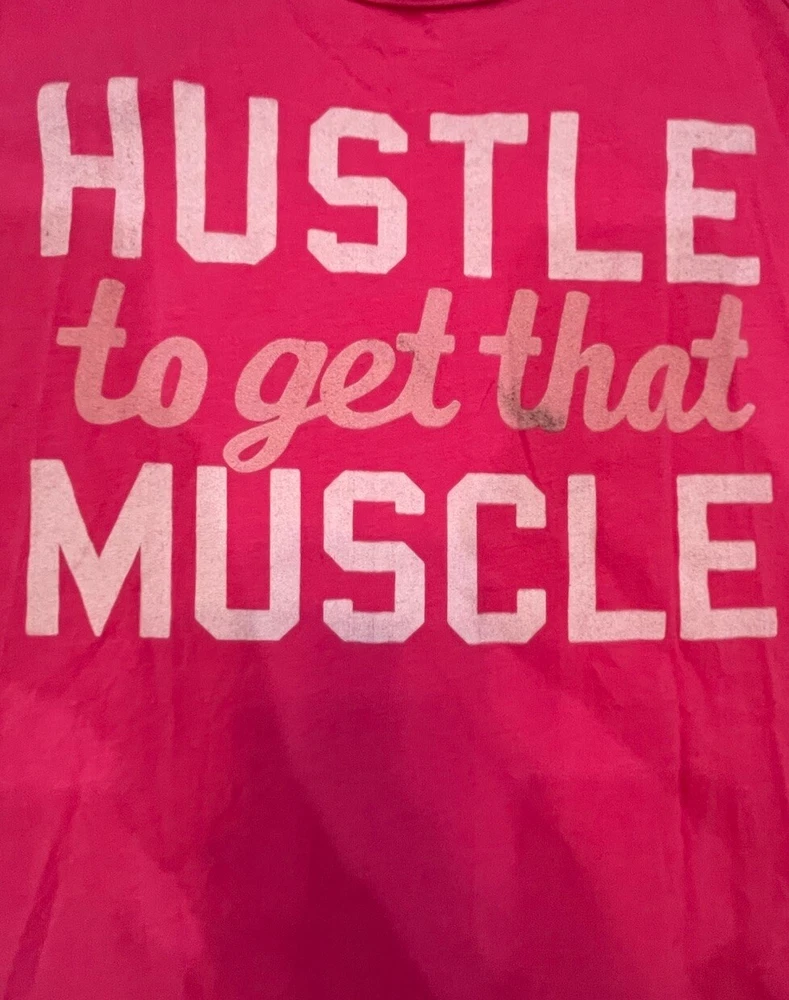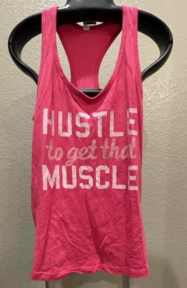 Ideal Women’s Athletic Pink Racerback Tank Top Size M “Hustle to get that muscle”