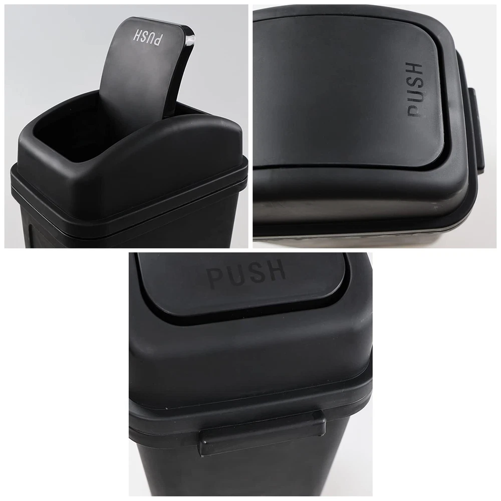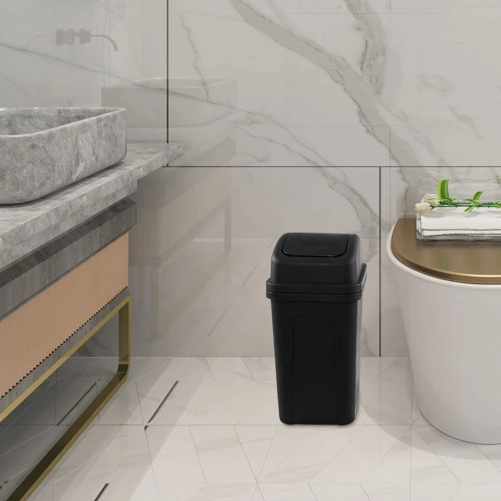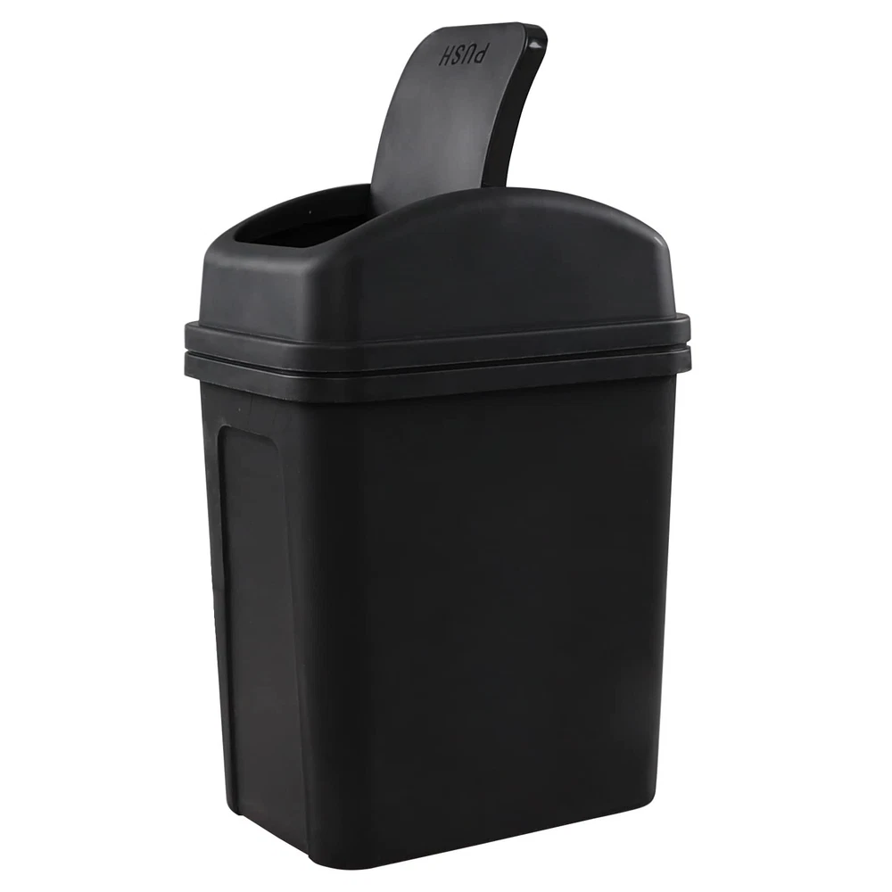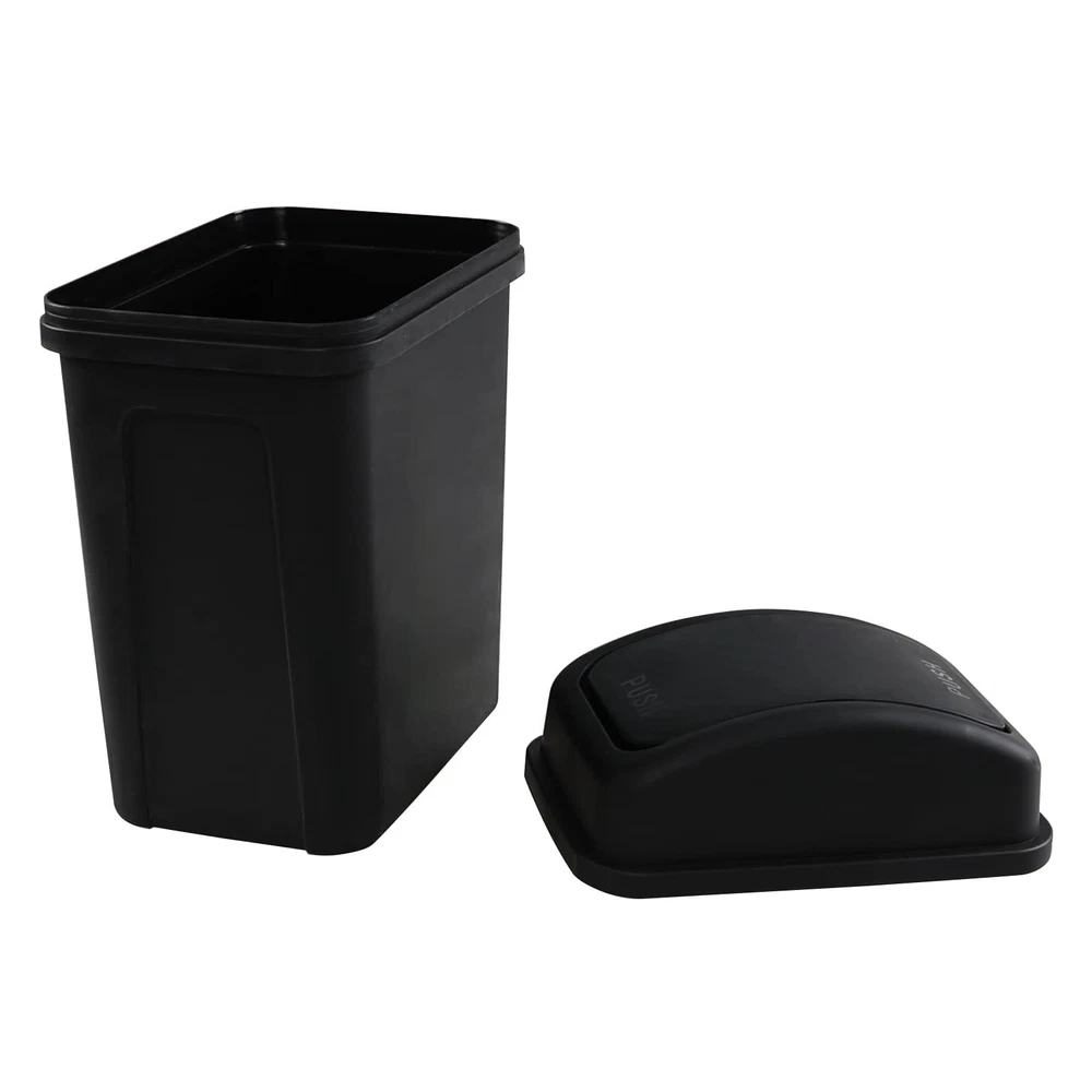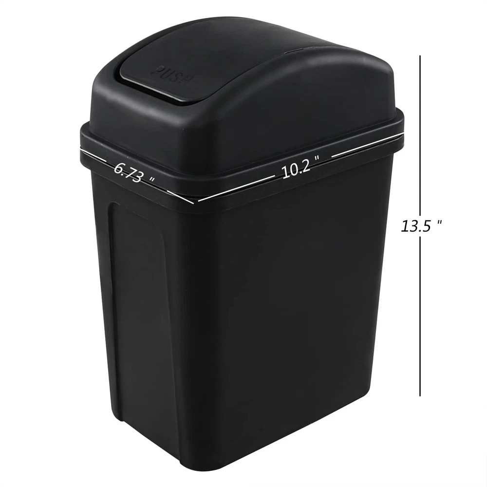 1.8 Gallon / 7 Liter Plastic Trash Can, Small Garbage Bin with Swing Lid, Black Packaged included: 1 pack swing top trash can Size: 10.2" x 6.73" x 13.5", Capacity: 1.8 Gallon / 7 Liter Swing lids makes it easy to throw things away, also keep odors in The waste bin is made of durable plastic, very easy to clean Small trash bin which gives you a lot of choices as to where to put it, such as bathroom, bedroom, living room