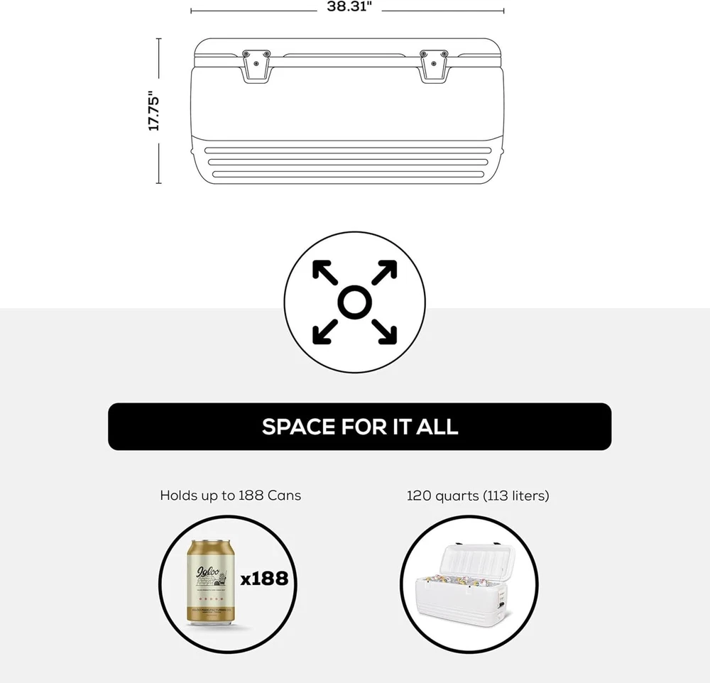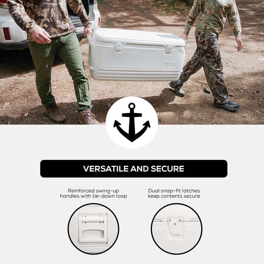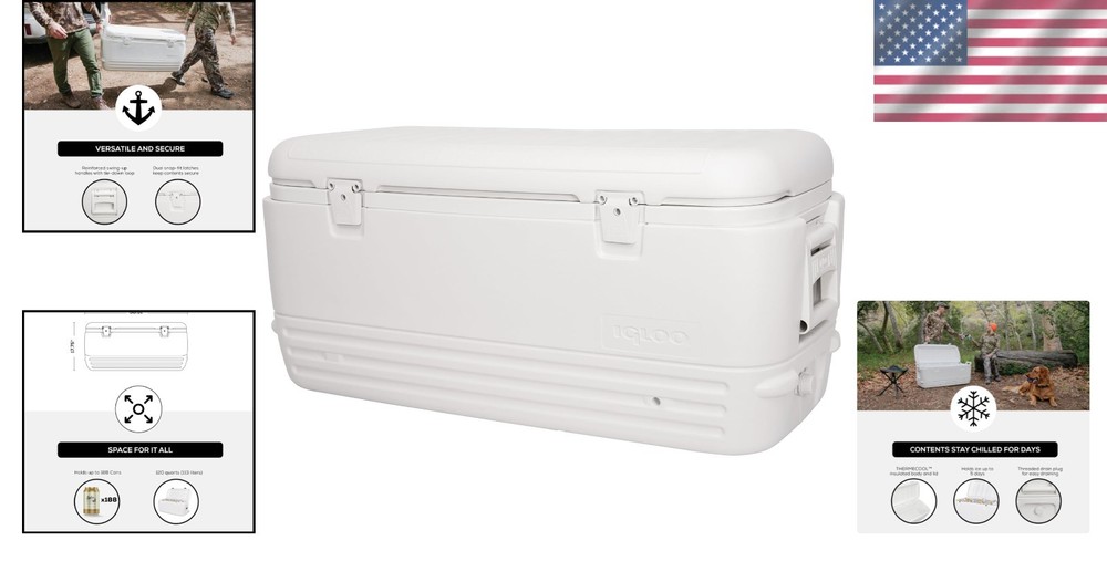 Igloo 120 Qt Hard Cooler - Camping Essential ‹ › ‹ › ‹ › ‹ › ‹ › ‹ › ‹ › ‹ › ‹ › ‹ › ‹ › 120 Qt Hard Cooler - Camping Essential Elevate your outdoor adventures with the ultimate companion - the 120 Qt Hard Cooler, engineered for functionality and designed for durability. Features: UV Protected: The lid is embedded with UV inhibitors to protect against sun damage, ensuring long-lasting performance. Stain & Odor Resistant: Enjoy a pristine interior with our specialized liner, which resists stains and odors, providing a cleaner experience. Convenient Drainage: Integrated threaded drain plug allows for an effortless hose hookup, making clean-up a breeze. Ergonomic Design: Reinforced, swing-up handles with a tie-down loop feature for safe and easy transportation. Secure Closure: Equipped with dual, snap-fit latches to ensure a secure lid closure during transport. Child Safety: Comes with a snap-lock child safety latch, providing peace of mind for family outings. Benefits: Enjoy extended cooling capabilities and maintain the freshness of your food and beverages, even in the harshest conditions. Versatile design allows for use in various outdoor activities such as camping, fishing, tailgating, and backyard barbecues. Durable construction ensures this cooler can withstand the rigors of outdoor adventures while maintaining its aesthetic appeal. Effortless portability due to reinforced handles designed for maximum comfort and control. Child safety features allow for worry-free family fun. Why Choose Our 120 Qt Hard Cooler? This isn't just a cooler; it's an integral part of your outdoor experience. The 120 Qt Hard Cooler is designed for those who refuse to compromise on quality and performance. Its robust features not only provide superior cooling but also offer practicality with every use. Whether you’re camping in the great outdoors, hosting a festive gathering, or enjoying a day at the beach, our cooler ensures that your refreshments remain perfectly chilled while you create unforgettable memories. Don’t settle for less – invest in the cooler that champions versatility and durability. Order your 120 Qt Hard Cooler today and embrace the great outdoors with confidence! Shipping Free & Fast Shipping - We offer free shipping to most of the USA with a normal delivery time of 3-10 business days. However, due to various situations, additional delivery time (up to 3 weeks) may be required for some items. Alternative Carriers - We may use alternative carriers (e.g. USPS, FedEx, UPS, etc.) to ensure your package arrives safely and on time. Due to the use of multiple carriers, we are unable to provide a tracking number automatically. Handling Time - Orders are processed and shipped within 1-5 business days of receiving cleared payment. Shipping Restrictions - Shipping to Alaska, Hawaii, Puerto Rico, Guam, and other US territories may incur shipping charges or delivery restrictions. Please contact us before ordering, or your order can be refunded/cancelled. State Restrictions - There may be restrictions based on your state of purchase. For example, certain items may not be shipped to California due to state regulations. Contact for Tracking Updates - If you require tracking updates or have any concerns about the delivery of your order, please feel free to contact us, and we will be happy to assist you. Return 30-Day Hassle-Free Returns - We want you to be completely satisfied with your purchase. If you are not, you can return the item within 30 days of receiving it for a full refund or exchange. Easy Return Process - To start a return, simply contact us and we will provide you with a prepaid return shipping label and detailed instructions. Restocking Fee - There are no restocking fees for returns. However, the buyer is responsible for return shipping costs if the return is not due to a seller's error. Refund Processing Time - Refunds will be processed within 5 business days of receiving the returned item in its condition. Payment We accept all major credit cards, PayPal, and Apple Pay for your convenience. Your payment information is secure and encrypted to ensure a safe and seamless transaction. Please complete your payment within 3 days of purchase to avoid any delays in shipping. Feedback Your feedback is extremely important to us. We strive to provide the best products and customer service possible. If you are satisfied with your purchase, please take a moment to leave us a positive review. If you have any concerns or issues with your order, please contact us before leaving negative feedback. We are committed to resolving any problems and ensuring your satisfaction. Contact Us If you have any questions or concerns, please feel free to out to our customer support team. You can contact us through the eBay messaging system. We are available Monday to Friday, 9:00 am to 5:00 pm EST, and we will do our best to respond to your inquiry within 24 hours. Buy it now and enjoy a pleasant shopping experience! Unit Quantity: 120 qt Features: Insulated,UV inhibitors,Stain-resistant,Odor-resistant,Threaded drain plug,Reinforced handles,Tie-down loop,Snap-fit latches,Child safety latch,Stain- and odor-resistant liner,Reinforced, swing-up handles,Tie-down loop feature,Snap-lock, child safety latch Material: Plastic Suitable For: Camping Items Included: Cooler Type: Hard Cooler Color: Polar White Capacity: 120 qt Number of Compartments: 1 Item Depth: 17.38 in Item Weight: 18.19 lb