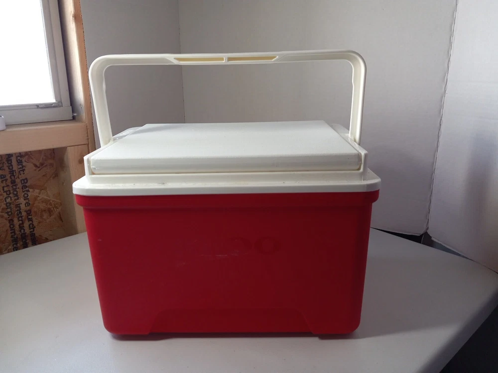 Keep your drinks and snacks cool and fresh with the Igloo Laguna 9 Qt Red Personal Cooler Ice Chest Lunchbox. This 9 qt capacity cooler box can hold up to 13 cans of your favorite beverage and is perfect for sports events or outdoor activities. It features a solid red color and is made of durable plastic material, with a tow handle for easy mobility. The Igloo Laguna cooler box requires no assembly and weighs only 3 lbs, making it lightweight and easy to carry around. It has an item depth of 9.5" and a height of 9", with an item width of 13". This cooler box is perfect for those who love the outdoors and need a reliable way to keep their food and drinks fresh and cool.