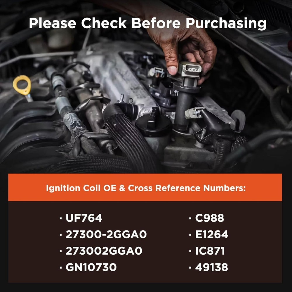 Free eBay listing template designed by dewiso.com Ignition Coil Pack and Iridium Spark Plugs Kit, UF764 93175, for Hyundai Sonata Santa Fe Sport Tucson 2015 2016 2017 2018 2019, for Kia Optima Rondo Sorento Sportage Stinger, for Genesis 2.0L 2.4L L4 FREE AND FAST SHIPPING! About this item 【RESTORE ENGINE POWER & IMPROVE EFFICIENCY】Worn ignition components can cause power loss and inefficient fuel burn. This ignition coil pack and iridium spark plug set helps deliver stronger, more consistent sparks for improved combustion—supporting smoother acceleration, reduced vibration, and better fuel efficiency in daily driving conditions 【REDUCE MISFIRE & UNSTABLE IDLE】Designed to help address common ignition-related issues such as engine shaking, hesitation, rough idle, or hard starts. This matched ignition coil and spark plug kit supports stable spark output and smoother engine operation from startup to highway driving 【IRIDIUM SPARK PLUGS & OE-GRADE COILS】Pre-gapped fine-wire iridium spark plugs are engineered to support efficient combustion and extended service life. Ignition coils feature heat-resistant materials and epoxy-sealed construction to deliver stable ignition energy and durability comparable to OE replacement parts 【DIRECT FIT OE REPLACEMENT & EASY INSTALL】Designed as a direct replacement for OE part numbers 27300-2GGA0、UF-764、UF764、273002GGA0、GN10730、C988、E1264、IC871、49138. Plug-and-play design requires no modification. Package includes 4 ignition coils and 4 iridium spark plugs, suitable for DIY installation with basic tools 【WIDE VEHICLE COMPATIBILITY – PLEASE CONFIRM FITMENT】Fit for Hyundai Sonata 2015–2019 2.0L / 2.4L, for Hyundai Santa Fe 2019–2020 2.4L, Santa Fe Sport 2017–2018 2.4L, for Tucson 2018–2020 2.4L; for Kia Optima 2016–2018 2.4L, for Kia Sportage 2017–2020 2.4L, for Kia Sorento 2016–2020 2.4L/2.0L. Please verify vehicle year, engine size, and Ebay fitment information before ordering Product We offer a 30-Day Return Policy on items which you are not completely satisfied with. You have the option for a full-refund or an exchange of the item. No returns are available on items shipped outside of the US . Shipping We offer Free Shipping to the US and ship within 2 business days of payment, usually sooner. We use UPS express shipping. That's why your products are usually delivered within 3 days . Contact We try our very best to make sure every customer is completely satisfied. If there's a problem , message us! We're happy to help. 24/7 live chat available.