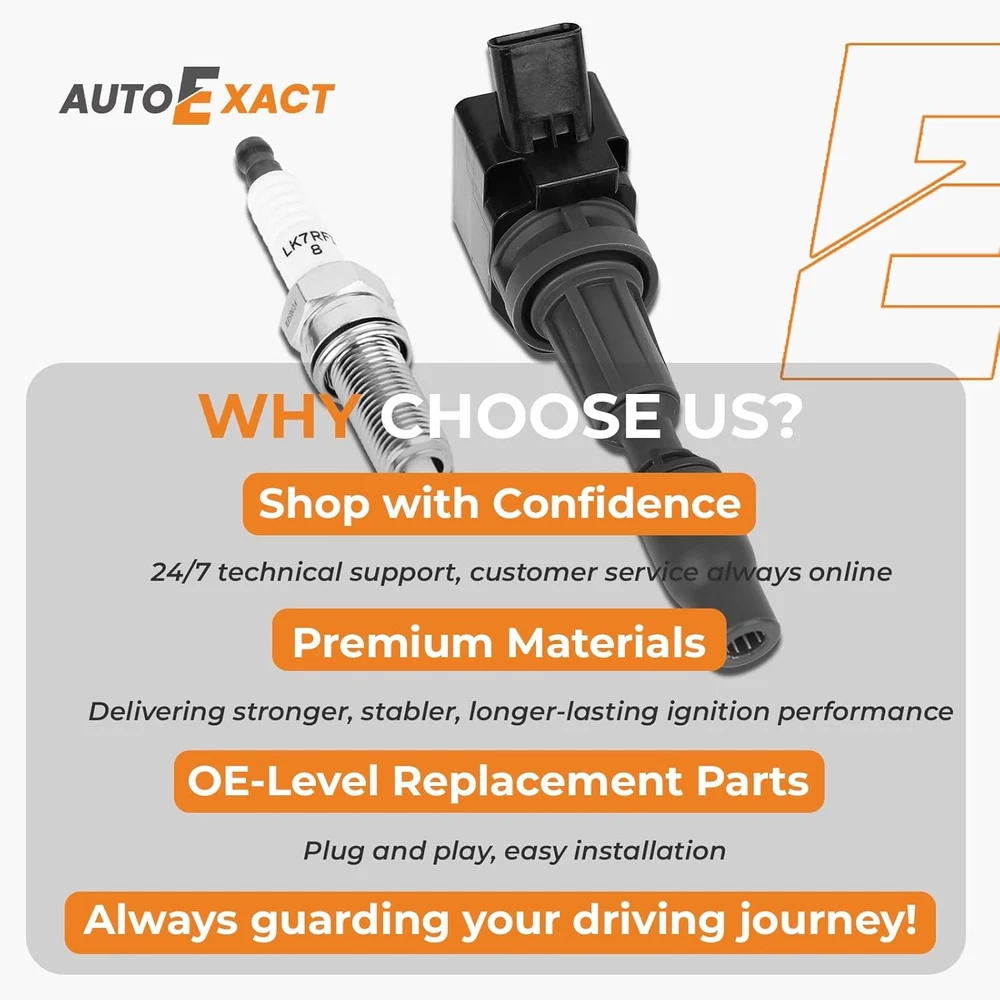 Free eBay listing template designed by dewiso.com Ignition Coil Packs and Iridium Spark Plugs Kit Fit for Hyundai 2015-2019 Sonata Santa Fe Tucson Kia 2017-2022 Sportage Optima Sorento 2.0L 2.4L L4, #UF764 93175 Set of 4 FREE AND FAST SHIPPING! About this item RESTORE PEAK PERFORMANCE & SAVE FUEL: Unlock horsepower, boost throttle response, cut gas costs. Worn ignition parts lose power and waste fuel. Autoexact high-performance coil & iridium plugs deliver stronger, stabler sparks for full combustion—smoother acceleration, less shaking, better fuel economy. ELIMINATE MISFIRE & ROUGH IDLE: Tired of shaking, check engine light (P0300-P0308 codes) or poor starting? Autoexact ignition coil and spark plug set fixes these issues, restoring smooth, quiet engine run. Enjoy reliable starts every time. PREMIUM IRIDIUM & OE-QUALITY: Pre-gapped fine-wire iridium spark plugs (up to 40,000 miles life) ensure full combustion for max power and fuel economy. Epoxy-potted, heat-resistant ignition coils deliver strong ignition energy and durability—better than standard OEM parts. DIRECT OE REPLACEMENT & EASY DIY: 100% OEM fit, no mods needed, plug-and-play. Made for your vehicle’s make, model & VIN. Package Contents: 4pcs Ignition Coils Packs, 4pcs Iridium Spark Plugs. Refer to the install guide on the product detail page, DIY with basic tools, save on dealership labor. COMPATIBILITY: 2015-2019 Hyundai Sonata 2.4L, 2017-2022 Kia Sportage 2.4L, 2016-2020 Kia Optima 2.4L, 2016-2020 Kia Sorento 2.4L, 2019-2020 Hyundai Santa Fe 2.4L, 2017-2018 Hyundai Santa Fe Sport 2.4L, 2018-2021 Hyundai Tucson 2.4L, 2016-2019 Hyundai Sonata 2.0L, 2017-2020 Kia 0ptima 2.0L OE & REPLACE NUMBER: UF764, GN10730, C988, C50007DL, 273002GGA0, NGK 97390, NGK 93175, NGK 95983, XP5702. Before purchasing, please confirm the vehicle fitment to avoid purchasing the wrong product. RIGOROUS TESTING & GUARANTEED: Each unit passes strict voltage and sealing tests. Backed by 2-year warranty & lifetime expert support. 100% guarantee for your satisfaction & engine health. Product We offer a 30-Day Return Policy on items which you are not completely satisfied with. You have the option for a full-refund or an exchange of the item. No returns are available on items shipped outside of the US . Shipping We offer Free Shipping to the US and ship within 2 business days of payment, usually sooner. We use UPS express shipping. That's why your products are usually delivered within 3 days . Contact We try our very best to make sure every customer is completely satisfied. If there's a problem , message us! We're happy to help. 24/7 live chat available.