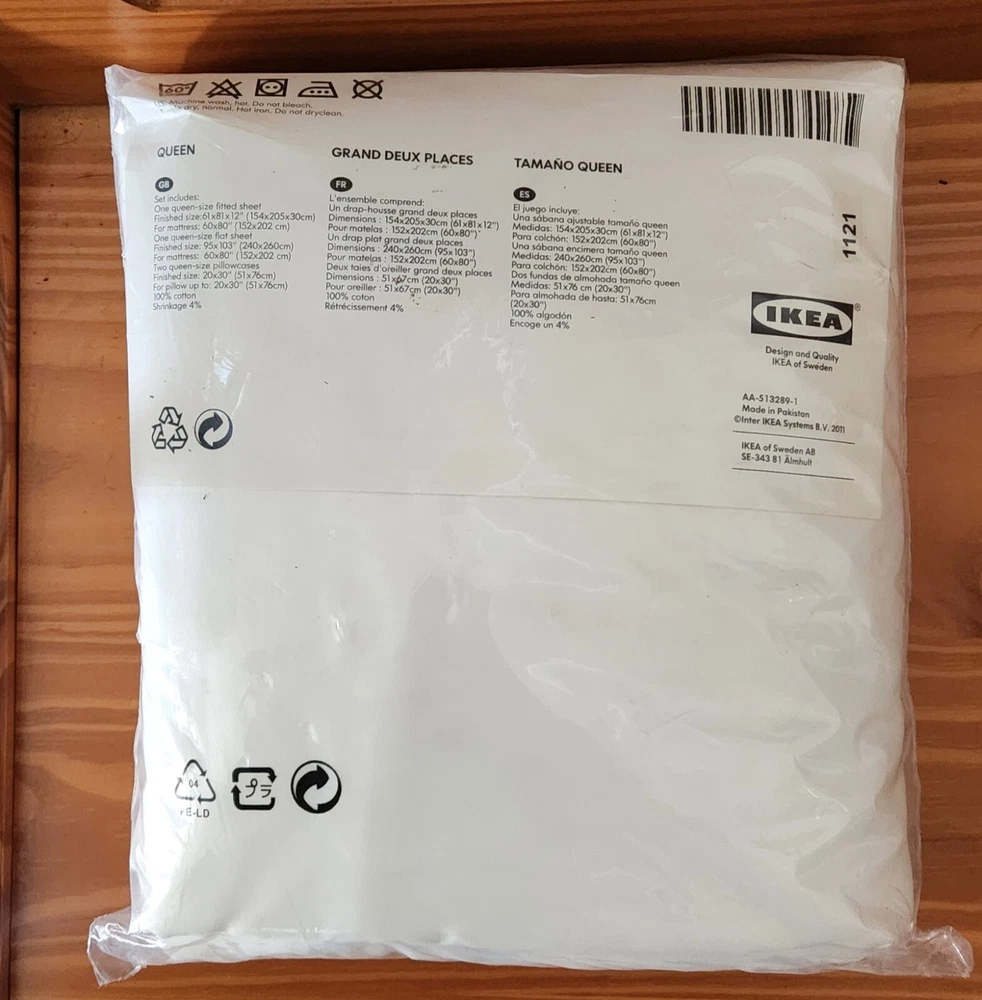 Ikea Dvala Sheet Set- Queen Size 1 flat sheet 1 Fitted Sheet 2 Pillow Cases Whte solid for 60x80 mattress and 20x30 pillows New, sealed