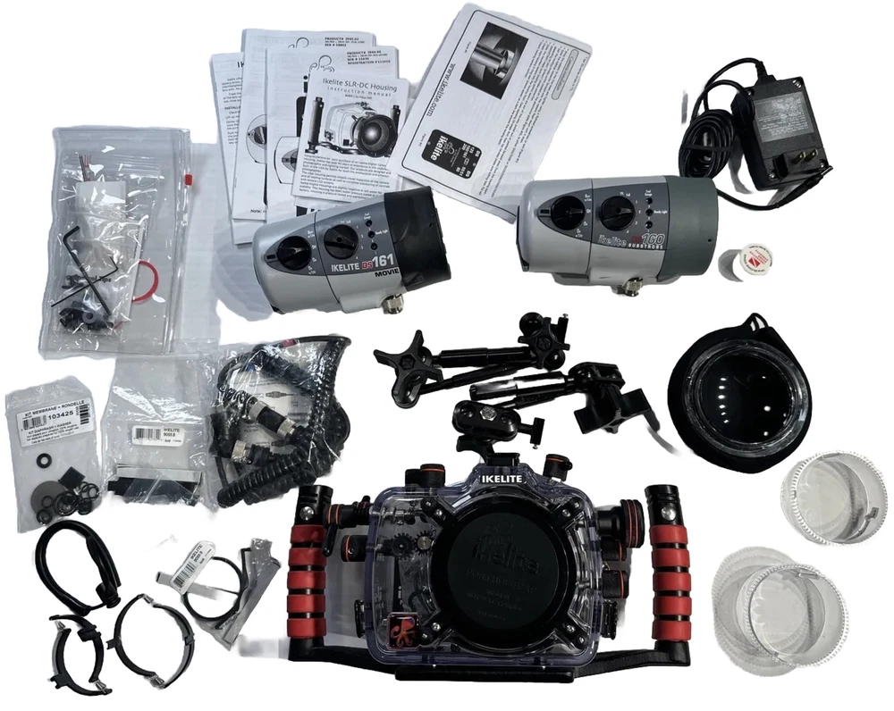 Lightly used condition, the underwater lights charge up and work perfectly. Comes with a lot of extra O rings and accessories. Please see photos for condition and items included. Instructions will be to be followed closely to insure proper water proofing, the end user will take on this responsibility. The instructions are included. Camera equipment bag also included.