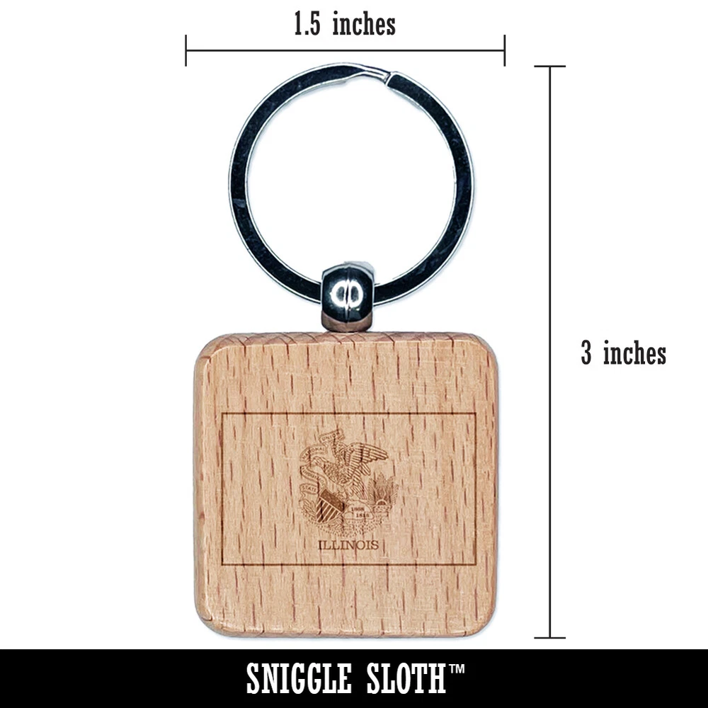 Illinois State Flag Engraved Wood Square Keychain Tag Charm