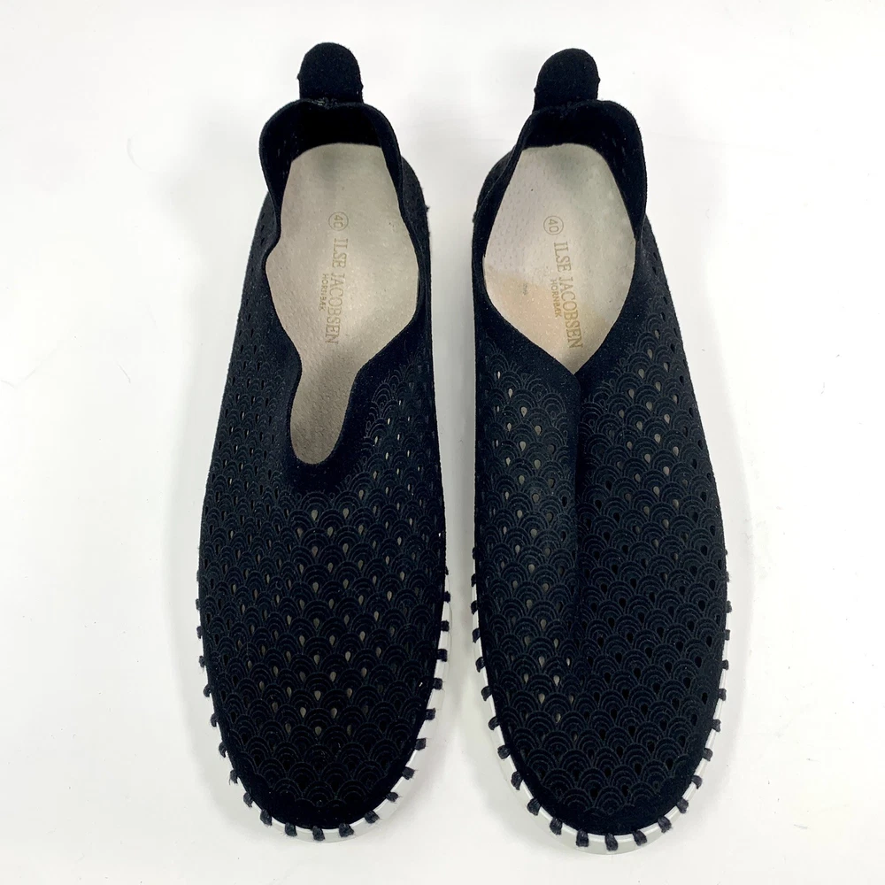 Ilse Jacobsen Tulip Black Perforated Shoes Slip On Womens 40 EU US 9-9.5 Nice condition, one shoe has an area of discoloration on the insole and these have light wear to the soles. Feel free to contact me with any questions, I'm happy to help.