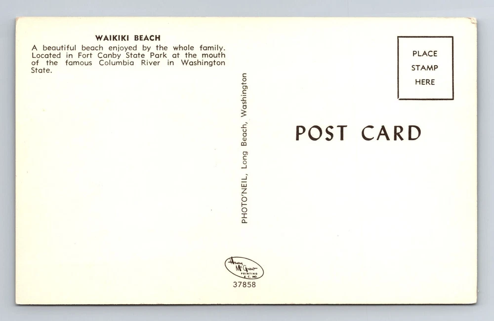 Ilwaco WA-Washington, Waikiki Beach, Fort Canby State Park, Vintage Postcard