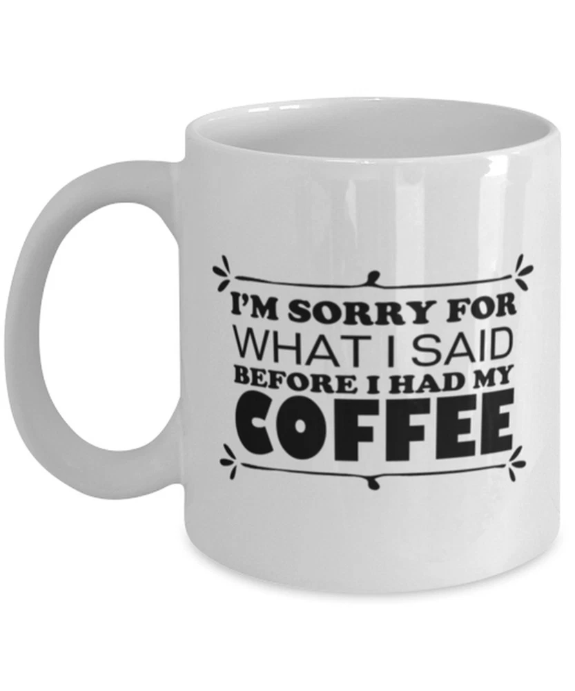 I'm Sorry For What I Said Coffee Mug - White Coffee Mug Product Details.. This high quality 11oz. ceramic white mug has a premium hard coat that provides crisp and vibrant color reproduction sure to last for years. Perfect for all hot & cold beverages. The highest quality printing possible is used. It will never fade no matter how many times you wash it. Material: 100% Ceramic. Print both sides. Dishwasher and Microwave Safe. High Gloss + Premium White Finish. Printed in the U.S.A. Personalized & Custom. We support personalized and custom mug to add custom, when placing an order, you can add notes to the "order note" in shipping address section. Also you can contact us directly via message. Shipping Info. Ready to ship in 1 to 2 business days, All products are made-to-order and proudly printed in the United States. Shipped by USPS and DHL, You will receive your order in 5-7 days. Replace & Refund. All products are defective during shipping broken, chipped will be replaced free of charge. You are not satisfied with the product, we will refund 100% money to you. If any other issues arise, please do not hesitate to message, we would be more than happy to assist you.