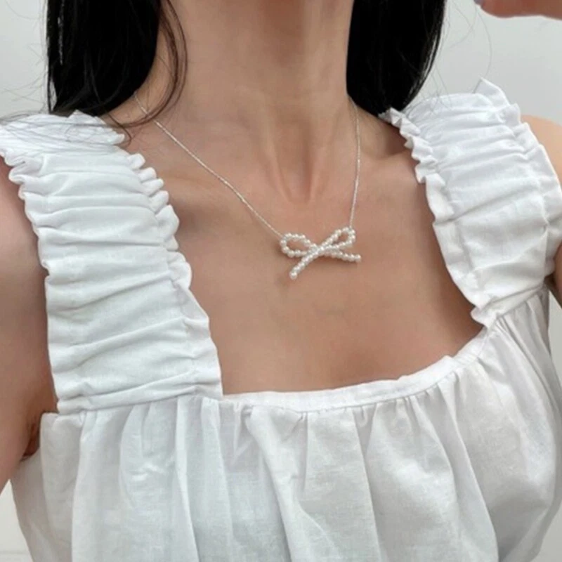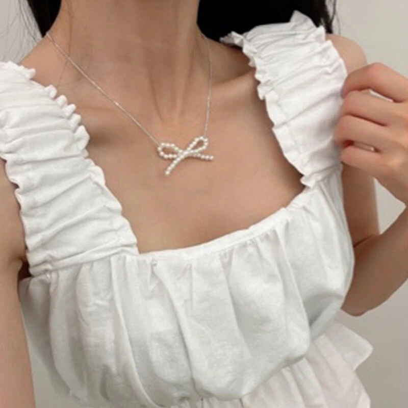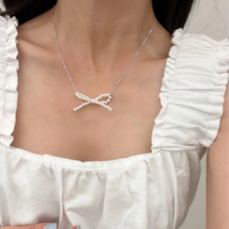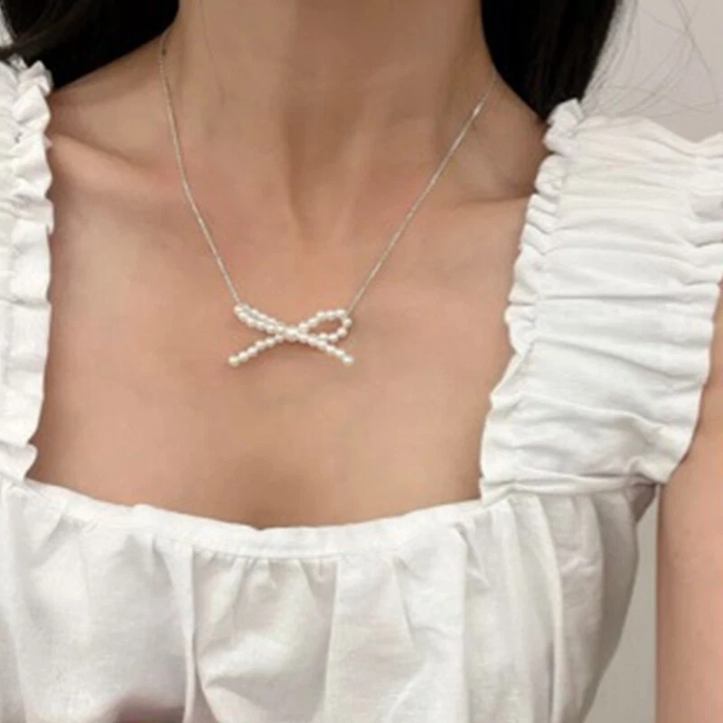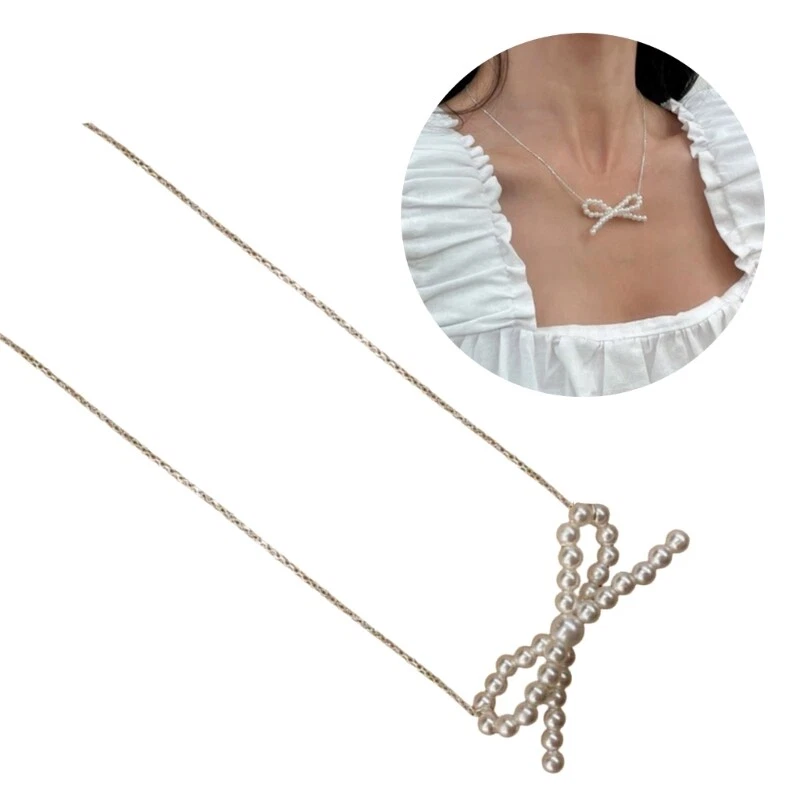 Imitation Pearls Bead Bow Necklace Bowknot Pendant Clavicle Chain Women Jewelry Features: This necklace features a unique butterfly bow designs, showcasing your individuality and of Make with imitation pearls, this necklace offer both comfort and elegances. Suitable for fashion forward individuals who appreciate stylish accessory, this necklace is for women who loves pearls jewelry. Whether it is a dinner party, a casual gathering, this necklace adds a touch of charm to any occasion, making you the center of attention. Perfectly complementing your overall look, this necklace enhances your wherever you go. Specifications: Chain Length:Approx.50cm/19.68inch Weight:9g Package Includes: 1Pc Necklace note: 1.Please allow 1-2cm errors due to manual measurement, make sure that you do not mind before you order. 2.Due to the difference between different monitors, the picture may not reflect the actual color of the item.