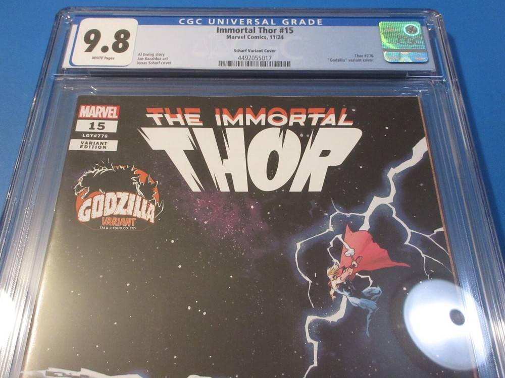 This auction is for Immortal Thor #15 variant i n CGC 9.8 with a new case condition. This week we are selling an incredible collection including Amazing Spider-man , Silver Surfer, Dr. Strange, X-men, Iron Man, Hulk, Fantastic Four, Black Panther, Batman, CGC books and many other 1st appearance key issues. You are sure to find something you are looking for this week. Bonus Offer! I will add a bonus comic book for every 10 auctions you pay for on the same invoice this week. Our Shipping rates are: USA: 5 dollar flat rate shipping with no limit, multiple comic lots have a charge and additional combined lots are half price. Canada: 16 Dollars for the 1st comic and 1.50 each after that. International: 18 dollars for the 1st comic and 1.50 each after that. CGC books are 11.99 flat rate in the USA, 24 bucks and 12 combined for Canada and 28 bucks and 14 combined for international. Feel free to ask questions. I guarantee superfast Domestic shipping! ...to open their eyes...that they may receive forgiveness of sins and a place among those who are sanctified by faith in me. Acts 26:18
