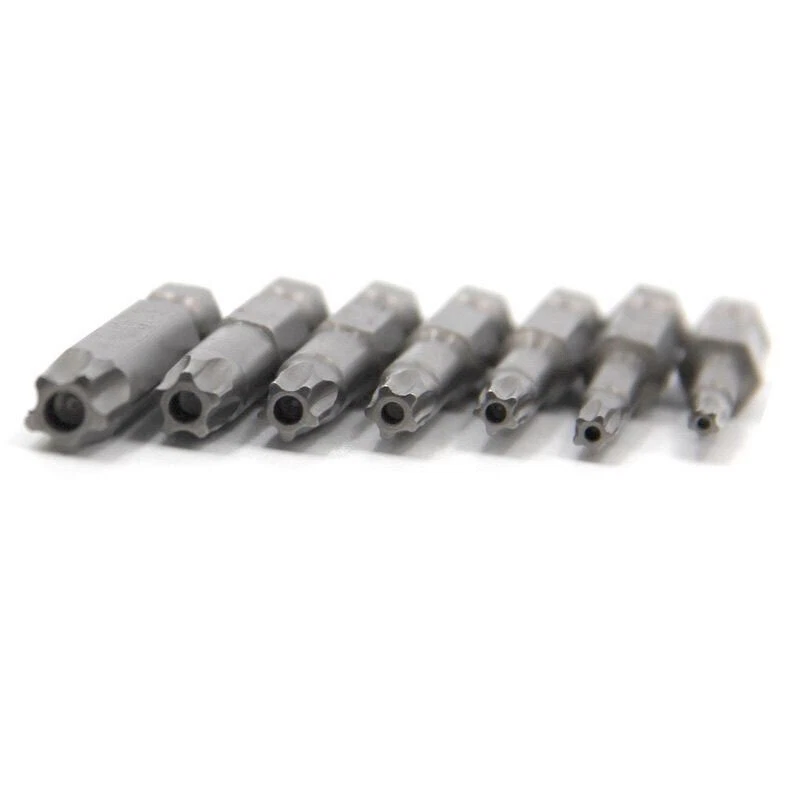 Product D escription 12PCS Torx Screwdriver Bit S et 50mm Product Characteristics High Q uality I ndustrial G rade M aterials: The Torx screwdriver bit set is made of high-quality S2 alloy steel with a special heat treatment process to increase the torque and full hardness of the bit, and it has good wear resistance and is more durable than regular Torx screwdriver bits. High P recision M achining T echnology: The product adopts CNC precision machining technology to ensure the accuracy of the product, so that the drill can withstand the instantaneous impact of large torque pneumatic tools, which greatly improves the service life of the product itself. Magnetic: The magnetic Torx screwdriver drill set can quickly and easily adsorb screws, greatly improving your work efficiency. Repeated use does not diminish the magnetic force. Suitable F or A V ariety O f P ower T ools: The 1/4" hexagon handle allows it to accommodate a wide range of power tools, allowing you to quickly change chucks. Suitable for electric drill, air drill, electric screwdriver, manual screwdriver and so on. A W ide R ange O f U se S cenarios: It can be widely used in automobile, home, industrial and other maintenance, and can also be used in other screw drives. Mechanical P rinciple D esign: Strong torque, high torque, after contact with the screw head, the impact reaction force generated by the impact screwdriver is absorbed by the torque part, effectively preventing the damage of the tool head. Straight and concentric, tight bite. Product Specification Status: 100% Brand New Material: S2 A lloy S teel Quantity: 12PCS Shank T ype: 6.35mm/ 1/4" H ex S hank Length: 1.97"/50mm Tool H ead S pecifications: T5, T6, T7, T8, T9, T10, T15, T20, T25, T27, T30, T40 Package Included 12 PCS × 50mm Torx Screwdriver B it Attention P lease 1. Please allow manual measurement error of 1-5mm. Make sure you don't mind before you buy. 2. Due to lighting effects, brightness contrast Settings of the display, etc., there may be some slight differences in the hue of the picture and the actual item, please make sure you don't mind.
