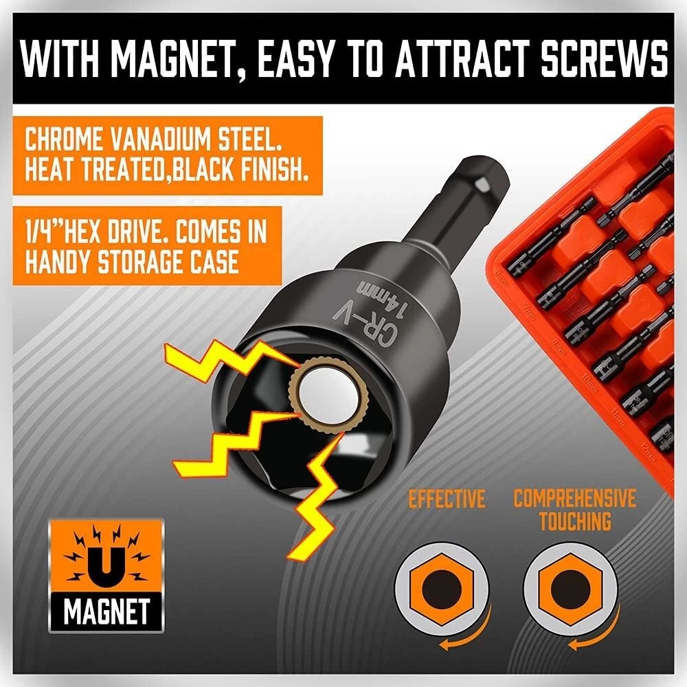 Impact Nut Driver Set - 15-Piece - Chrome Vanadium Steel - 1/4" Hex Shank ‹ › ‹ › ‹ › ‹ › ‹ › ‹ › ‹ › ‹ › ‹ › ‹ › Impact Nut Driver Set - 15-Piece -Chrome Vanadium Steel -1/4" Hex Shank Features: Made of industrial grade chromium vanadium steel for strength and durability. Black phosphate coating for corrosion resistance. Can be used with an impact/drill bit driver or an inner hexagonal ratchet. Firmly grasps hexagonal nuts and fasteners for easy installation or loosening/removal. Includes 8 metric sizes and 7 SAE sizes. Leaflet design head fastener with rounded edges prevents peeling and extends life. Designed for easy and efficient use. Perfect for both professional and DIY projects. Benefits: Strong and durable construction Corrosion resistant for long-lasting use Compatible with various tools for versatility Easy installation and loosening/removal of nuts and fasteners Wide range of sizes for different applications Prevents peeling and extends the life of fasteners Efficient and time-saving Suitable for professional and DIY projects Why choose our Impact Nut Driver Set? Don't settle for subpar nut drivers that can't withstand the demands of your projects. Our Impact Nut Driver Set is made of industrial grade chromium vanadium steel, ensuring strength and durability. With a corrosion-resistant black phosphate coating, these nut drivers are built to last. Whether you're using an impact/drill bit driver or an inner hexagonal ratchet, our nut setters will firmly grasp hexagonal nuts and fasteners for easy installation or loosening/removal. With a wide range of metric and SAE sizes, you'll have the right tool for any job. The leaflet design head fastener with rounded edges prevents peeling and extends the life of your fasteners. Designed for easy and efficient use, our Impact Nut Driver Set is perfect for both professional and DIY projects. Upgrade your tool collection with our high-quality Impact Nut Driver Set - order now and experience the difference! Shipping Free & Fast Shipping - We offer free shipping to most of the USA with a normal delivery time of 3-7 days. However, due to the current situation, additional delivery time (up to 3 weeks) may be required for some items. Alternative Carriers - We may use alternative carriers (e.g. USPS, FedEx, UPS, etc.) to ensure your package arrives safely and on time. Due to the use of multiple carriers, we are unable to provide a tracking number automatically. Handling Time - Orders are processed and shipped within 1-2 business days of receiving cleared payment. Shipping Restrictions - Shipping to Alaska, Hawaii, Puerto Rico, Guam, and other US territories may incur shipping charges or delivery restrictions. Please contact us before ordering, or your order can be refunded/cancelled. State Restrictions - There may be restrictions based on your state of purchase. For example, certain items may not be shipped to California due to state regulations. Contact for Tracking Updates - If you require tracking updates or have any concerns about the delivery of your order, please feel free to contact us, and we will be happy to assist you. Return 30-Day Hassle-Free Returns - We want you to be completely satisfied with your purchase. If you are not, you can return the item within 30 days of receiving it for a full refund or exchange. Easy Return Process - To start a return, simply contact us and we will provide you with a prepaid return shipping label and detailed instructions. Restocking Fee - There are no restocking fees for returns. However, the buyer is responsible for return shipping costs if the return is not due to a seller's error. Refund Processing Time - Refunds will be processed within 5 business days of receiving the returned item in its original condition. Payment We accept all major credit cards, PayPal, and Apple Pay for your convenience. Your payment information is secure and encrypted to ensure a safe and seamless transaction. Please complete your payment within 3 days of purchase to avoid any delays in shipping. Feedback Your feedback is extremely important to us. We strive to provide the best products and customer service possible. If you are satisfied with your purchase, please take a moment to leave us a positive review. If you have any concerns or issues with your order, please contact us before leaving negative feedback. We are committed to resolving any problems and ensuring your satisfaction. Contact Us If you have any questions or concerns, please feel free to reach out to our customer support team. You can contact us through the eBay messaging system. We are available Monday to Friday, 9:00 am to 5:00 pm EST, and we will do our best to respond to your inquiry within 24 hours. Thank you for supporting our small family business!