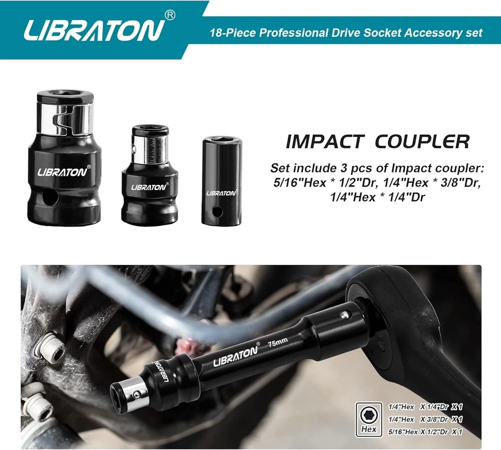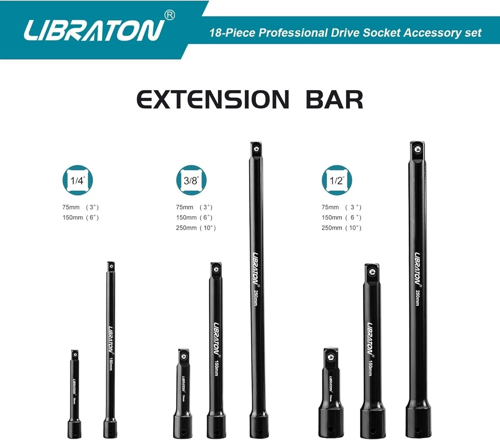 Impact Socket Extension Set with Universal Joints - 18PC Drive Accessories ‹ › ‹ › ‹ › ‹ › ‹ › ‹ › ‹ › ‹ › ‹ › Impact Socket Extension Set with Universal Joints - 18PC Drive Accessories Key Features: Comprehensive Size Range: 18-Pieces socket extension set includes: 1/4" Drive Extension Bar (3", 6") 3/8" Drive Extension Bar (3", 6", 10") 1/2" Drive Extension Bar (3", 6", 10") Universal Joints (1/4", 3/8", 1/2") Socket Adapters (1/4"F * 3/8"M, 3/8"F * 1/4"M, 3/8"F * 1/2"M, 1/2"F * 3/8"M) Impact Couplers (1/4"Hex * 1/4"Dr, 1/4"Hex * 3/8"Dr, 5/16"Hex * 1/2"Dr) Premium Material: Constructed from high-strength Chrome Vanadium Steel, ensuring durability and performance. Versatile Usage: Perfect for industrial, mechanic, or construction tasks, equipped with extensions to access tight spaces and swivel sockets for angled connectivity. Organized Convenience: Comes with a durable carrying case for easy transport and secure storage - each tool is marked for quick identification. Quality Assurance: Meets or exceeds ANSI performance standards with a 1-year warranty for peace of mind. Why You Need This Set: Whether you're tackling home improvement projects, automotive repairs, or industrial applications, the Impact Socket Extension Set with Universal Joints is essential for achieving precision and efficiency. With a well-thought-out range of drives, extensions, and adapters, you can effortlessly reach into hard-to-access spots while maintaining optimal torque and control. Don't let difficult angles or confined spaces slow you down - equip yourself with this versatile 18-piece set and handle any challenge with confidence. Each piece is crafted to stand the test of time, ensuring you're always prepared for your next task. Upgrade your toolkit today and experience the absolute best in performance and organization! Shipping Free & Fast Shipping - We offer free shipping to most of the USA with a normal delivery time of 3-7 days. However, due to the current situation, additional delivery time (up to 3 weeks) may be required for some items. Alternative Carriers - We may use alternative carriers (e.g. USPS, FedEx, UPS, etc.) to ensure your package arrives safely and on time. Due to the use of multiple carriers, we are unable to provide a tracking number automatically. Handling Time - Orders are processed and shipped within 1-2 business days of receiving cleared payment. Shipping Restrictions - Shipping to Alaska, Hawaii, Puerto Rico, Guam, and other US territories may incur shipping charges or delivery restrictions. Please contact us before ordering, or your order can be refunded/cancelled. State Restrictions - There may be restrictions based on your state of purchase. For example, certain items may not be shipped to California due to state regulations. Contact for Tracking Updates - If you require tracking updates or have any concerns about the delivery of your order, please feel free to contact us, and we will be happy to assist you. Return 30-Day Hassle-Free Returns - We want you to be completely satisfied with your purchase. If you are not, you can return the item within 30 days of receiving it for a full refund or exchange. Easy Return Process - To start a return, simply contact us and we will provide you with a prepaid return shipping label and detailed instructions. Restocking Fee - There are no restocking fees for returns. However, the buyer is responsible for return shipping costs if the return is not due to a seller's error. Refund Processing Time - Refunds will be processed within 5 business days of receiving the returned item in its original condition. Payment We accept all major credit cards, PayPal, and Apple Pay for your convenience. Your payment information is secure and encrypted to ensure a safe and seamless transaction. Please complete your payment within 3 days of purchase to avoid any delays in shipping. Feedback Your feedback is extremely important to us. We strive to provide the best products and customer service possible. If you are satisfied with your purchase, please take a moment to leave us a positive review. If you have any concerns or issues with your order, please contact us before leaving negative feedback. We are committed to resolving any problems and ensuring your satisfaction. Contact Us If you have any questions or concerns, please feel free to reach out to our customer support team. You can contact us through the eBay messaging system. We are available Monday to Friday, 9:00 am to 5:00 pm EST, and we will do our best to respond to your inquiry within 24 hours. Buy it now and enjoy a pleasant shopping experience! Manufacturer Part Number: Socket Extension Set UPC: Not Set Unit Quantity: 3.01 Tools Included: Extension,Ratchets,Universal/Swivel,Socket Adapters,Swivel Sockets,Universal Joints,Extension Bars,Impact Coupler System of Measurement: SAE,Imperial Size: 1/4in.,3/8in.,1/2in. Brand: Unbranded Socket Type: Impact Drive Type: Hex/Allen Drive Size: 1/4in. Surface Finish: Black Oxide Warranty: 1 Year Number of Pieces: 18 Country/Region of Manufacture: Not Set Unit Type: Not Set Set or Single Item: Not Set