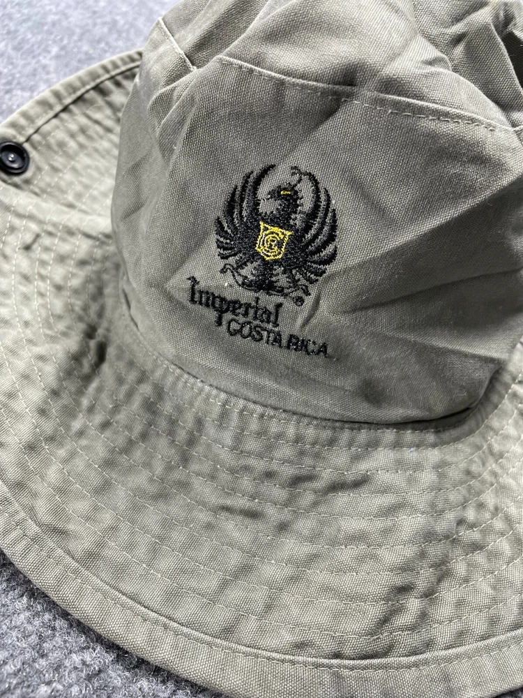 This Imperial Costa Rica bucket hat is the perfect addition to any adventurer's wardrobe. With a drawstring design and made from durable cotton canvas, this hat is both stylish and functional. The olive green color and solid pattern give it a classic look, while the 80s and 90s themes add a touch of nostalgia. Ideal for travel, hiking, or just everyday wear, this bucket hat is sure to become a go-to for any fashion-conscious man. Whether you're exploring the great outdoors or simply running errands around town, this hat is the perfect accessory to complete any outfit.