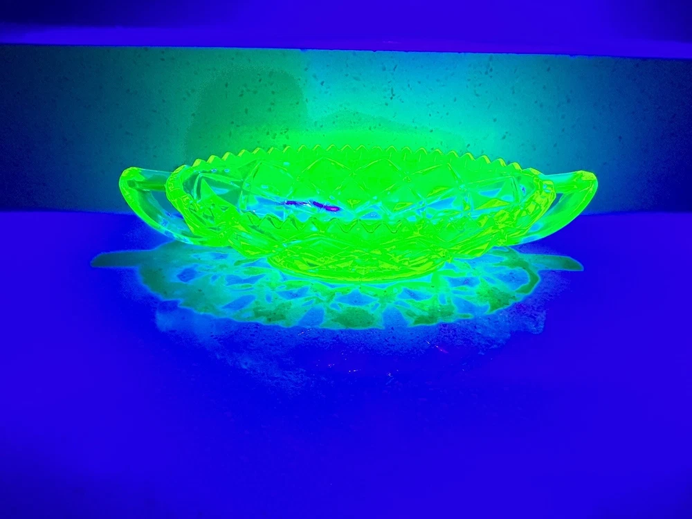 Imperial Glass- Ohio Diamond Block Green Uranium Vaseline Relish Pickle Dish