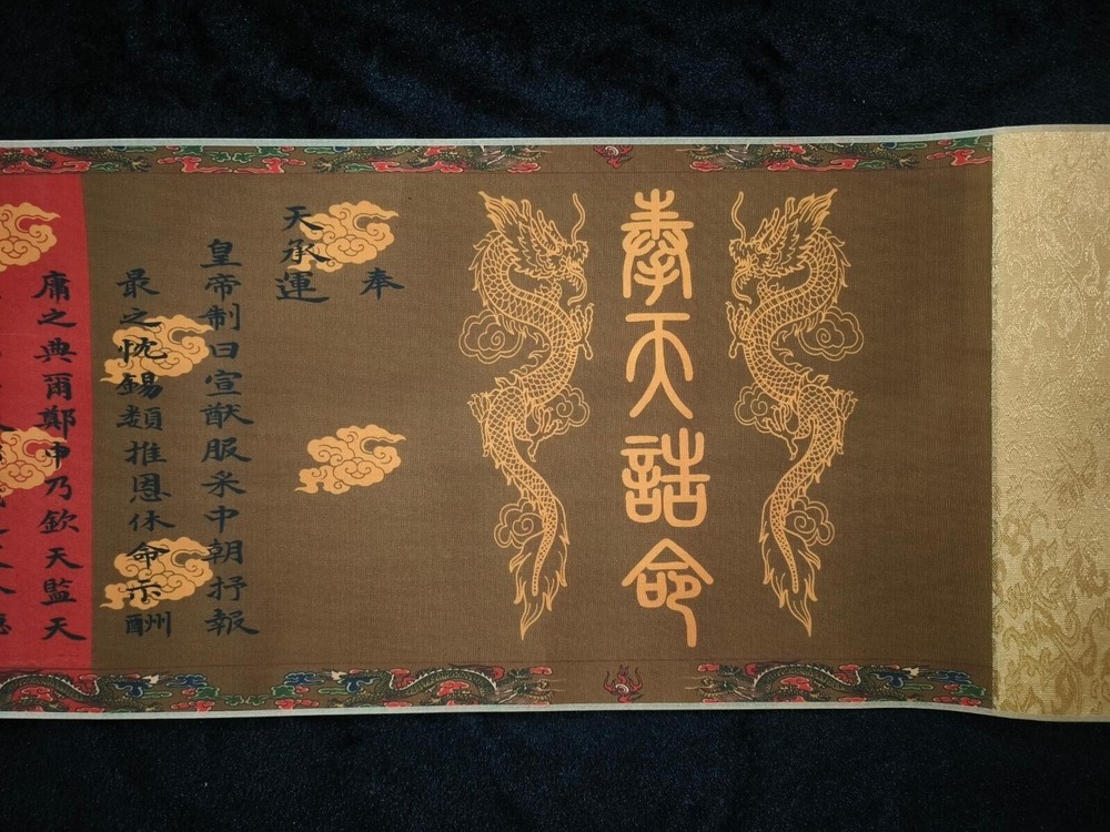 Product Description: Code ax10 Dragon Pattern Scroll of Emperor Kangxi's Imperial Edict Size: 360cm in total length * 30cm in width Take physical photos; 01df Payment Delivery details Terms of sales About us Contact usPaymentWe only accept PayPal paymentDelivery detailsUnited States: By China post 7-15 working days delivery! Other countries Regular AirMail Takes 25-40 working days If you need to quickly get it, you need to pay extra shipping costs All items will be shipped within 1-3 days upon receipt of cleared payment.Terms of sales Communication can solve 100% of problems, we care every single customer. If you have any questions please do not hesitate to contact us , We will give you an answer and give you the best price within 24 hours Non-professional photography. As the light of reason. Pictures anditems may have a little color difference. Please understand About usAll items sold by us are being described to the best of our abilities, as accurate as possible, and with utmost conscientiousness on our part. However, to avoid any potential oversights, I respectfully request your assistance in helping us to make this a mutually satisfactory transaction by thoroughly reviewing item description and photos, and asking all questions PRIOR TO BIDDING. Please Note that size and color representation are subject to manufacturing variance and may not be exact. Also note that monitor settings may vary from computer to computer and may distort actual colors. Please read these terms thoroughly before placing your bid.Contact usMy goal is to try our best to fulfill your satisfaction. If you are not satisfied with our products, please contact us, we will give you a satisfactory answer!Thank you very much!!!!!!