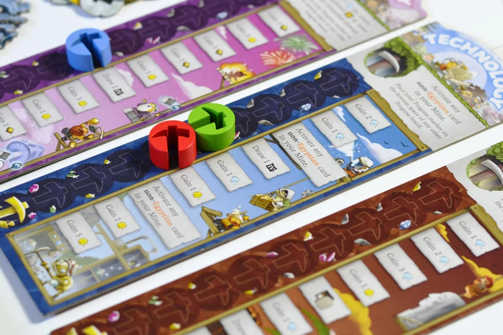 Imperial Miners is the latest game in the Imperial Settlers family. It is designed by Tim Armstrong (Arcana Rising, Orbis), and the illustrations are done by Hanna Kuik (Batman: Everybody Lies, Dune: House Secrets). Imperial Miners, like the other games in the series, is a card-based engine-builder, where players construct their small engines, create synergies between cards and combos, all with the aim of ultimately gaining as many Victory Points as possible! Imperial Miners is a light engine-building card game for 1 to 5 players from designer Tim Armstrong (Arcana Rising, Orbis). A stand-alone game set in the popular Imperial Settlers universe. An impressive replayability thanks to its wide range of different cards and modular progress boards. Rounds are played simultaneously, so gameplay is quick and lasts no longer than 45 minutes. Perfect game for both casual and experienced gamers.
