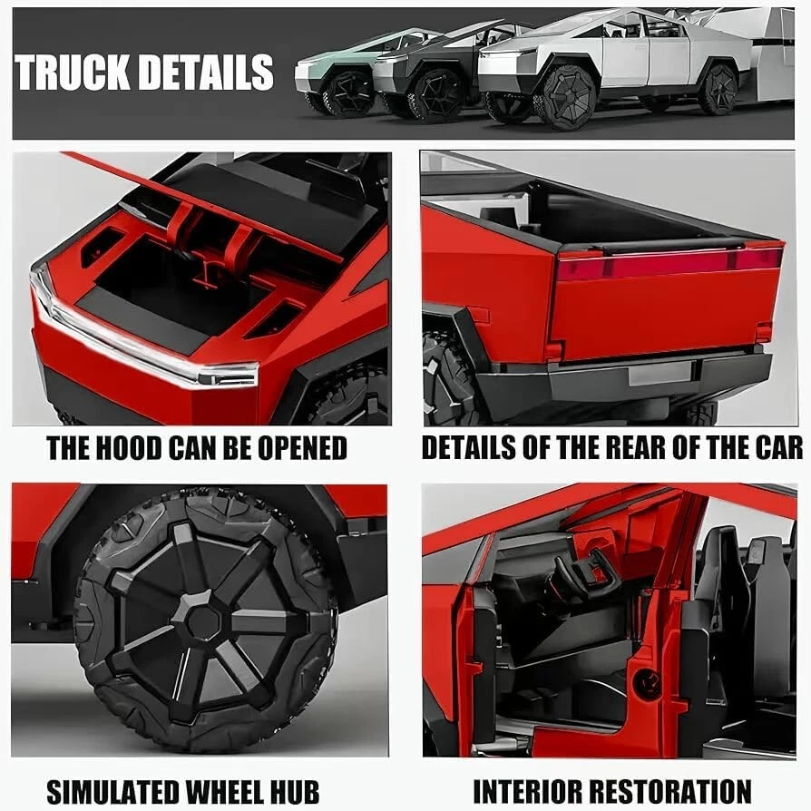 Impressive Alloy Cybertruck Model with Openable Features - Kids' Favorite Toy ‹ › ‹ › ‹ › ‹ › ‹ › ‹ › ‹ › ‹ › Impressive Alloy Cybertruck Model Your child's new favorite toy - the Alloy Cybertruck Model is designed for endless entertainment and imaginative play. Features: Premium Material: Crafted from high-quality alloy, this model boasts an excellent texture and durability. Openable Parts: Experience the thrill of realism with openable doors and hood, enhancing the interactive play experience. Unique Design: The innovative and eye-catching design of the pickup truck sets it apart from other toys. Realistic Details: Exquisite attention to detail, perfectly replicating the iconic Cybertruck model. Interactive Playability: Offers a hands-on play experience that sparks creativity and enjoyment. Benefits: High-quality alloy construction ensures longevity and durability. Realistic functionalities encourage imaginative play and hands-on interaction. Intriguing design captivates children and makes it an impressive addition to any toy collection. Promotes fine motor skills and creative storytelling through play. Why choose our Alloy Cybertruck Model? Your little one will be mesmerized by the combination of quality, design, and functionality presented in this Alloy Cybertruck Model. Whether it’s racing around the house or being a key player in imaginative play scenarios, this model fosters a sense of adventure and creativity. Bring home this impressive alloy model today and watch your child’s face light up with joy! Shipping Free & Fast Shipping - We offer free shipping to most of the USA with a normal delivery time of 3-7 days. However, due to the current situation, additional delivery time (up to 3 weeks) may be required for some items. Alternative Carriers - We may use alternative carriers (e.g. USPS, FedEx, UPS, etc.) to ensure your package arrives safely and on time. Due to the use of multiple carriers, we are unable to provide a tracking number automatically. Handling Time - Orders are processed and shipped within 1-2 business days of receiving cleared payment. Shipping Restrictions - Shipping to Alaska, Hawaii, Puerto Rico, Guam, and other US territories may incur shipping charges or delivery restrictions. Please contact us before ordering, or your order can be refunded/cancelled. State Restrictions - There may be restrictions based on your state of purchase. For example, certain items may not be shipped to California due to state regulations. Contact for Tracking Updates - If you require tracking updates or have any concerns about the delivery of your order, please feel free to contact us, and we will be happy to assist you. Return 30-Day Hassle-Free Returns - We want you to be completely satisfied with your purchase. If you are not, you can return the item within 30 days of receiving it for a full refund or exchange. Easy Return Process - To start a return, simply contact us and we will provide you with a prepaid return shipping label and detailed instructions. Restocking Fee - There are no restocking fees for returns. However, the buyer is responsible for return shipping costs if the return is not due to a seller's error. Refund Processing Time - Refunds will be processed within 5 business days of receiving the returned item in its original condition. Payment We accept all major credit cards, PayPal, and Apple Pay for your convenience. Your payment information is secure and encrypted to ensure a safe and seamless transaction. Please complete your payment within 3 days of purchase to avoid any delays in shipping. Feedback Your feedback is extremely important to us. We strive to provide the best products and customer service possible. If you are satisfied with your purchase, please take a moment to leave us a positive review. If you have any concerns or issues with your order, please contact us before leaving negative feedback. We are committed to resolving any problems and ensuring your satisfaction. Contact Us If you have any questions or concerns, please feel free to reach out to our customer support team. You can contact us through the eBay messaging system. We are available Monday to Friday, 9:00 am to 5:00 pm EST, and we will do our best to respond to your inquiry within 24 hours. Buy it now and enjoy a pleasant shopping experience! UPC: Not Set MPN: Not Set Recommended Age Range: 8-11 Years Features: Openable Parts,Realistic Details,High-quality Alloy,Unique Design,Interactive Playability,Openable Doors,Openable Hood,Exquisite Detail Design,Innovative Design,Charming and Attractive,Excellent Texture,Interactive Features Age Level: 8-11 Years Brand: Unbranded Vehicle Make: Tesla Scale: 1:18 Series: Cybertruck Toy Series Vehicle Year: Not Set Year of Manufacture: Not Set Vehicle Type: Pickup Material: Diecast Character Family: Cars Color: Red Model: Not Set Theme: Not Set Gender: Boys & Girls Country/Region of Manufacture: Not Set Autographed: Not Set Customized: Not Set